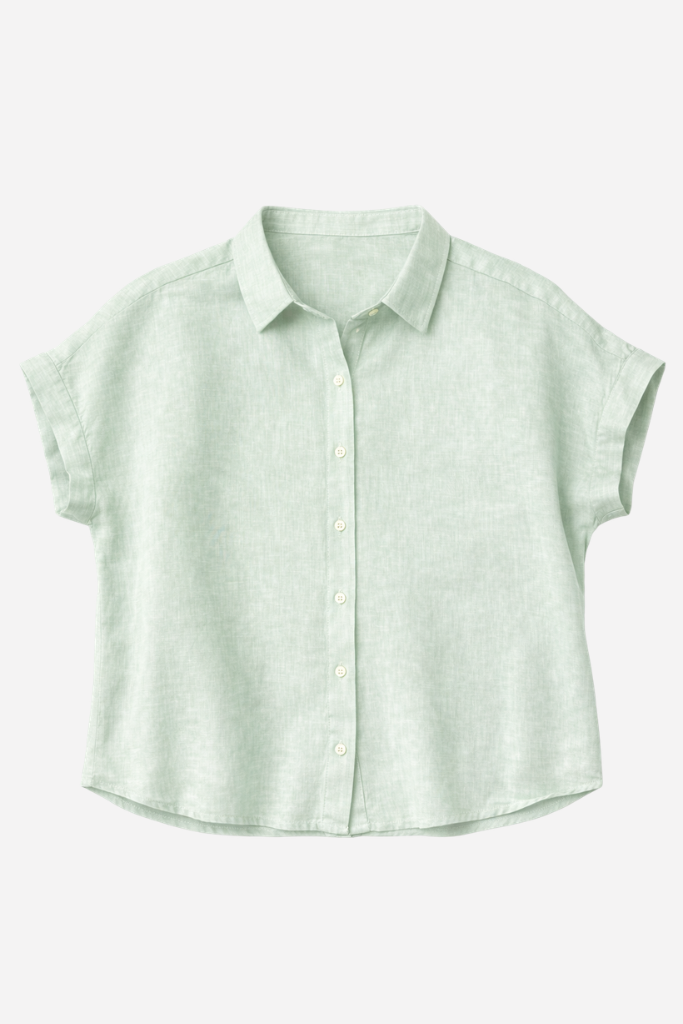Crafted from 100% premium linen, this blouse offers breathable comfort and a lightweight feel, making it ideal for warm days. The short sleeves with subtle turn-ups and the classic collar create a relaxed yet polished look, while the front button closure adds a timeless finish.