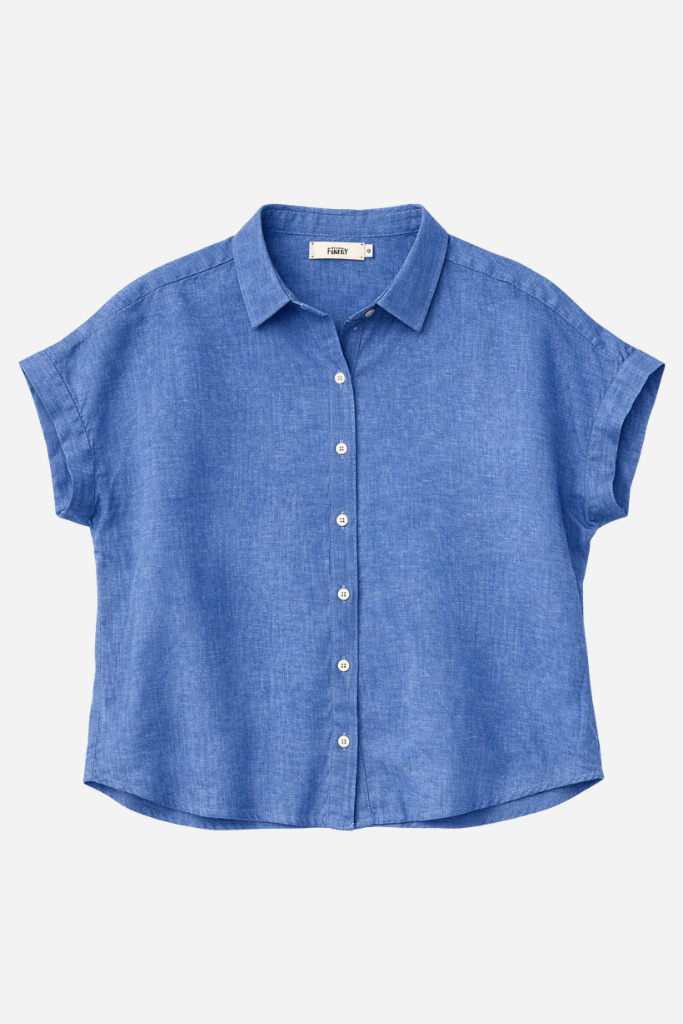 Crafted from 100% premium linen, this blouse offers breathable comfort and a lightweight feel, making it ideal for warm days. The short sleeves with subtle turn-ups and the classic collar create a relaxed yet polished appearance, while the front button closure adds a timeless finish.