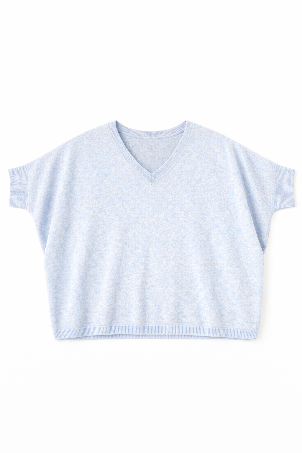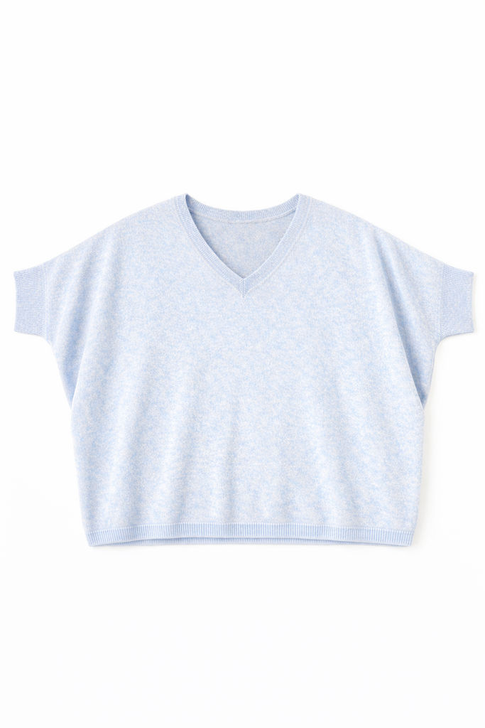 With an elegant V-neckline, short batwing-style sleeve and a fluid silhouette, this sweater offers effortless drape and comfort. Ribbed finishes at the hem and cuffs add subtle structure.