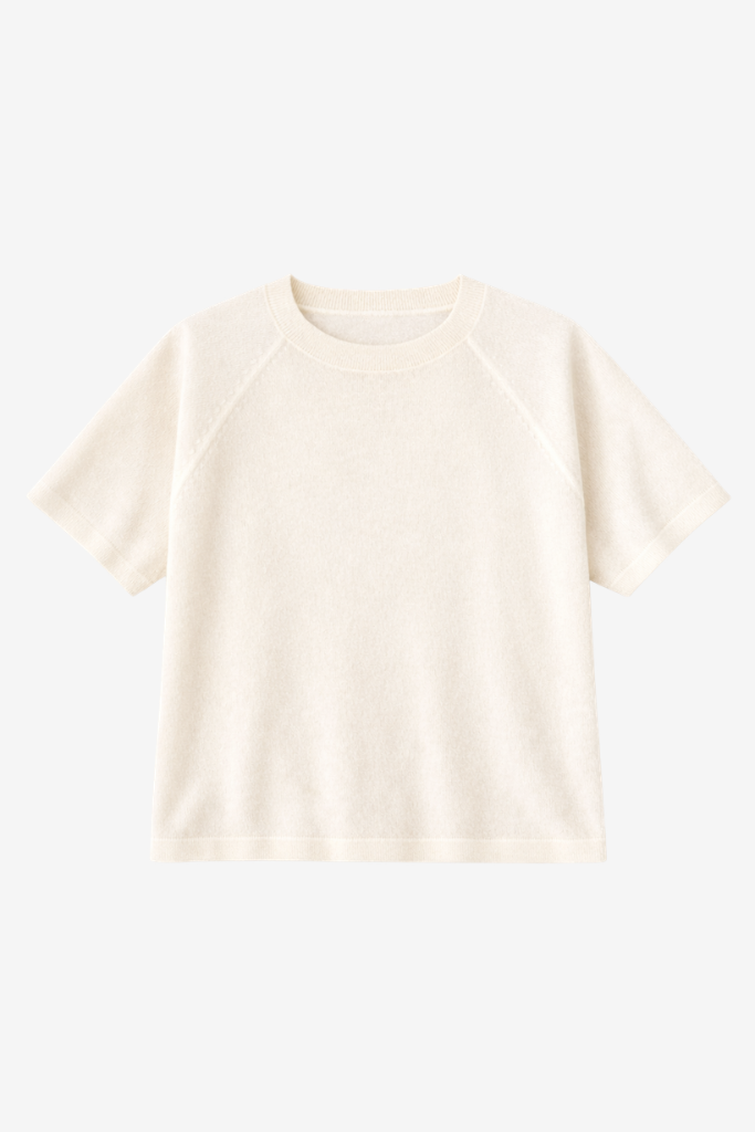 Featuring short sleeves, a round neckline and raglan stitching, the design is both comfortable and elegant. The straight fit drapes beautifully and pairs easily with trousers, jeans or skirts – from casual to more polished looks.