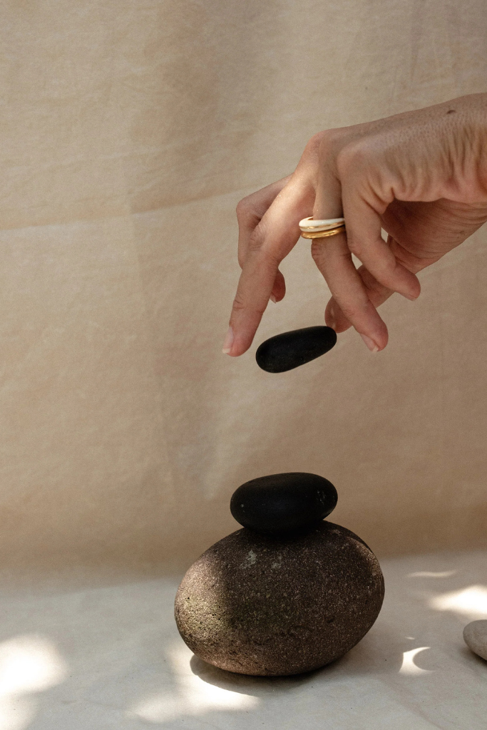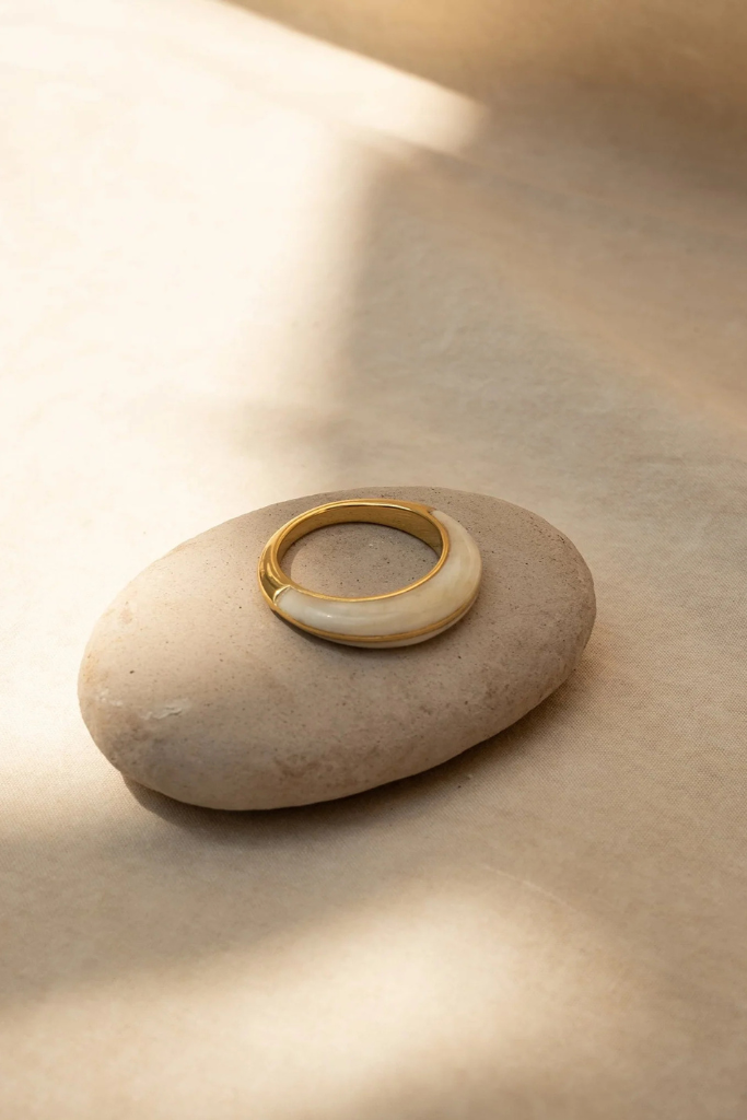 The natural bone inlay gives the piece an earthy, organic feel, perfectly balanced by the sleek, high-polish gold finish. A subtle statement ring that’s refined, sustainable and surprisingly versatile.