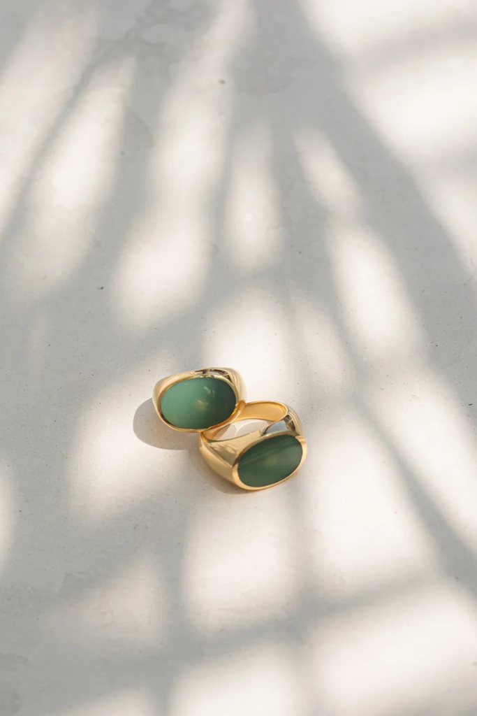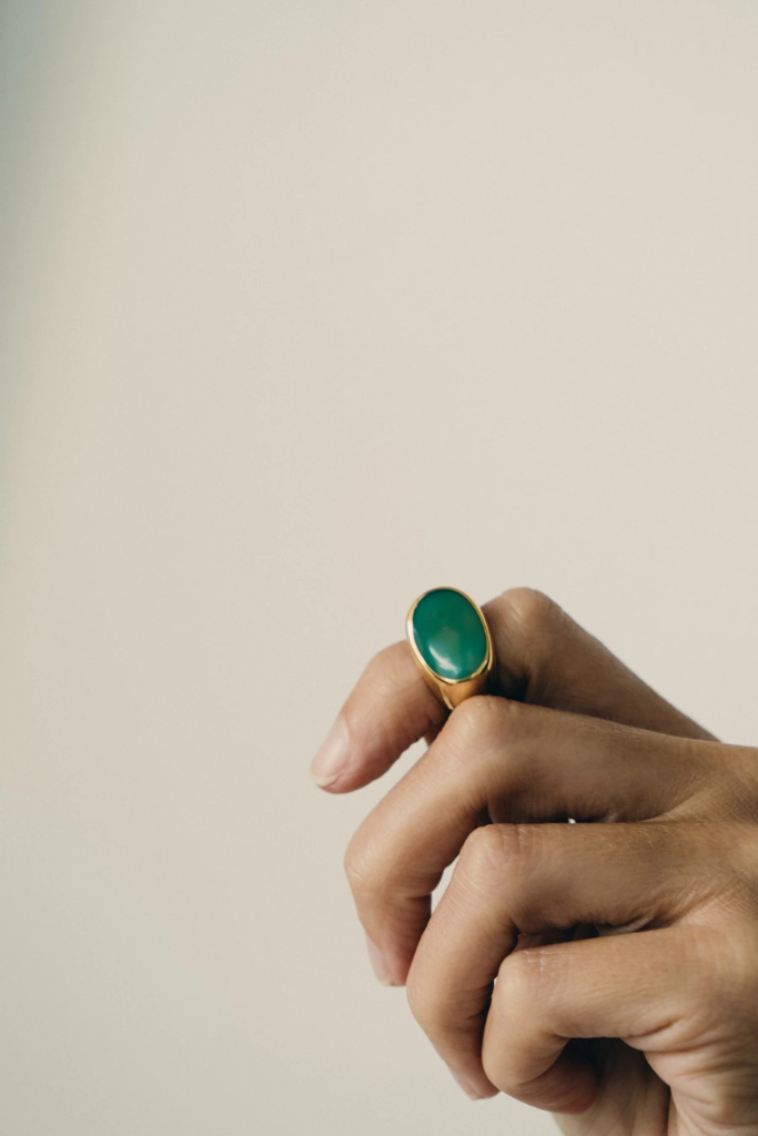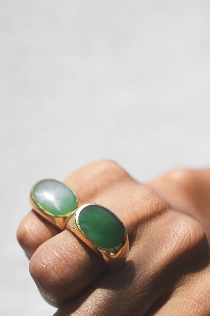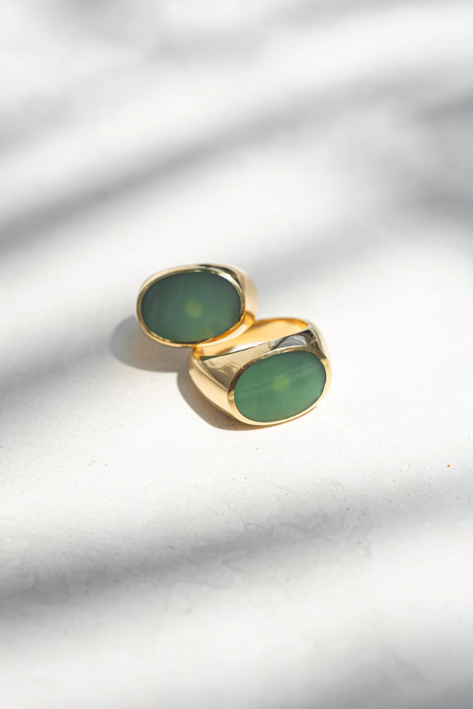 Review ADORN Signet Ring gold high polish green jade