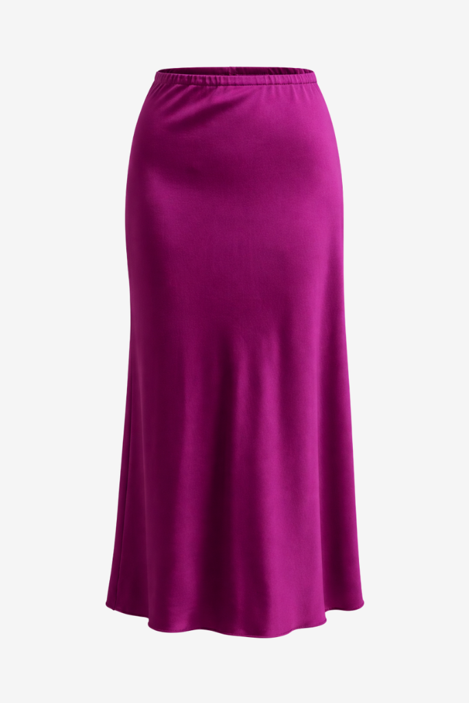 Create an accountThe AHLVAR GALLERY Hana Satin Skirt Light Berry is a refined midi skirt that marries luxury with comfort. Its bias-cut construction drapes beautifully, softly following the body’s shape. A double elastic waistband ensures both structure and ease. Crafted in a premium stretch satin, composed of 93% silk and 7% elastane, it offers a luxurious sheen and fluid movement.