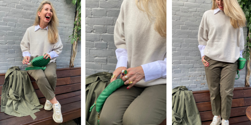 Groen is een kleur die vertrouwen en rust uitstraalt, terwijl ecru juist licht en verfijning toevoegt. Samen vormen ze een subtiel contrast dat zowel overdag als ’s avonds gedragen kan worden. Denk aan zachte kasjmiertruien, wollen jassen en luxe suède broeken in deze tinten, gecombineerd met stijlvolle accessoires. Het resultaat? Outfits die moeiteloos balanceren tussen modern en tijdloos.