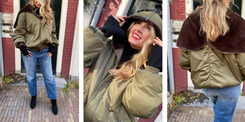 Stoer, warm en stijlvol, deze herfstlook is perfect voor frisse dagen waarop je comfort én uitstraling zoekt. De eyecatcher van de outfit is de Ibana Caylee jas in Olive Night. De oversized fit, de diepe olijfgroene tint en de afneembare bruine kraag geven deze jas een modieuze utility-uitstraling met een vrouwelijke twist.