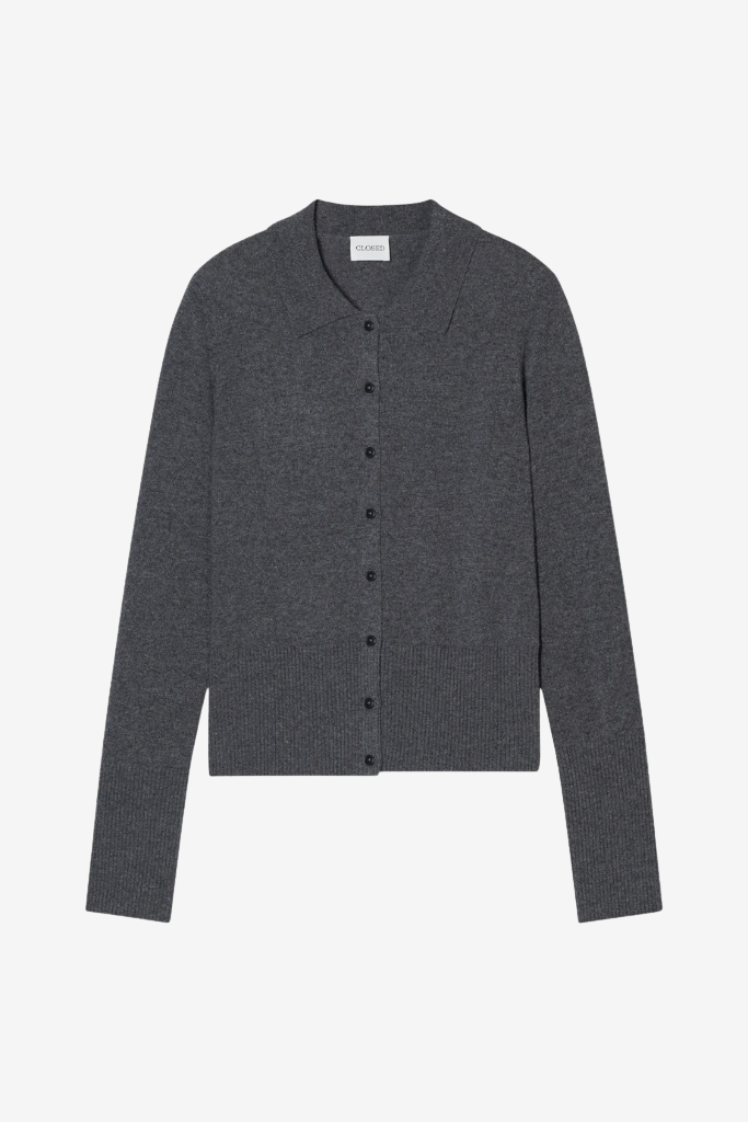 Review Closed Cardigan with collar dark grey melange