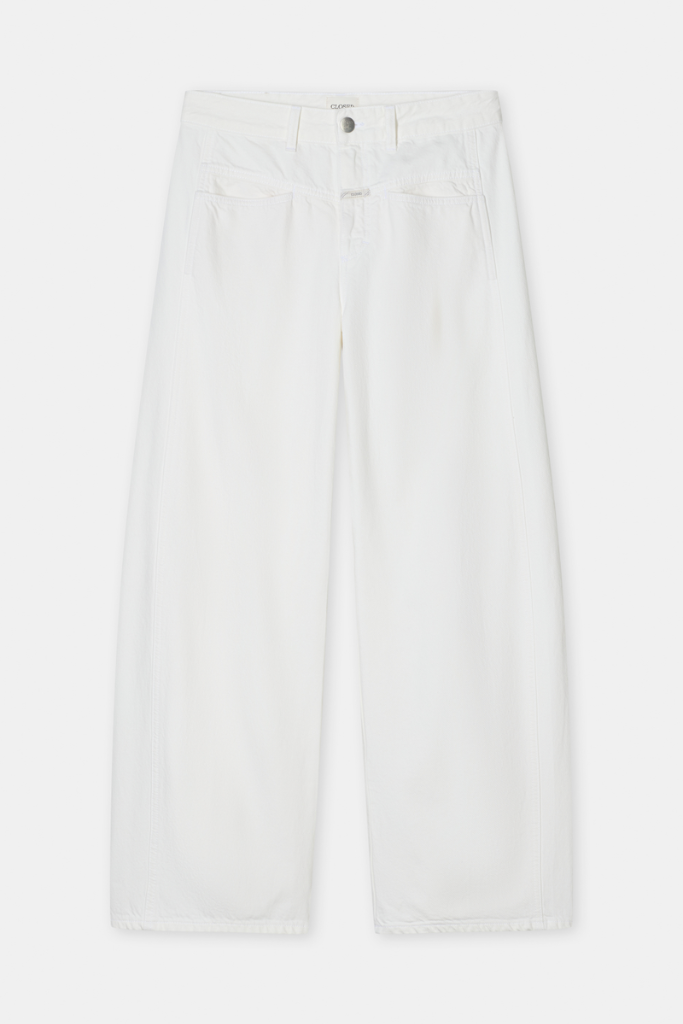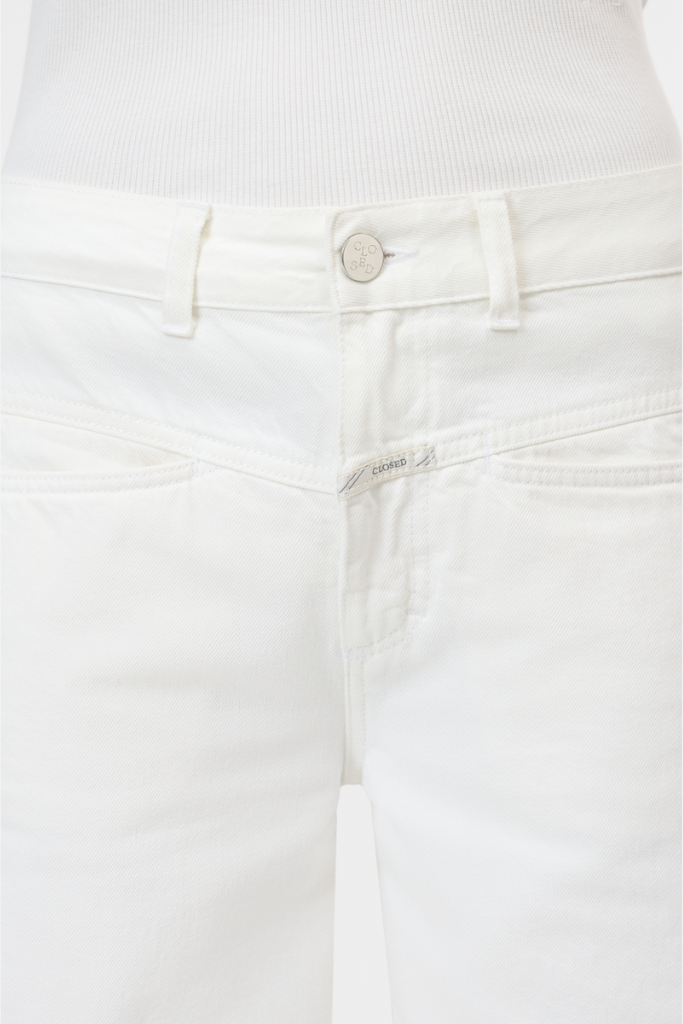 The Closed Tori-X Jeans in Ecru features a modern barrel fit with volume through the leg, tapered silhouette and a mid-rise waist. Crafted from sturdy 11 oz ecru denim with a smooth surface that holds its shape beautifully. The fabric blend includes 80% cotton and 20% recycled cotton, contributing to more conscious fashion choices. Signature details include Closed’s iconic X-pockets and slightly offset side seams that enhance the feminine shape. Italian-made and cut from authentic 3/1 Z twill, these jeans offer both timeless appeal and a contemporary edge – perfect with a fitted tank or oversized shirt.