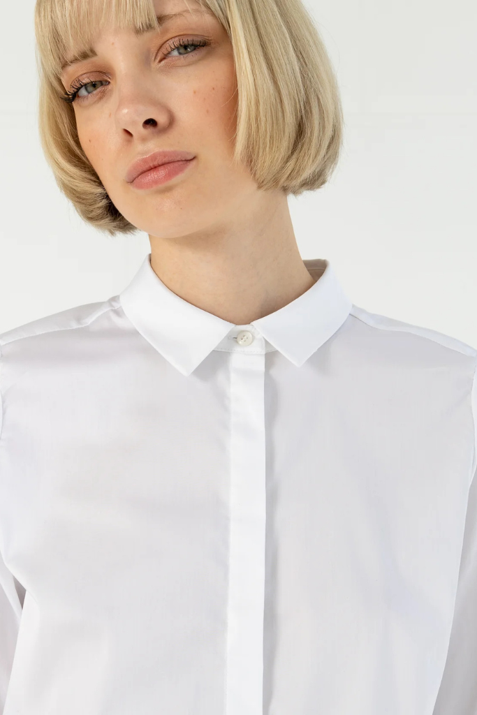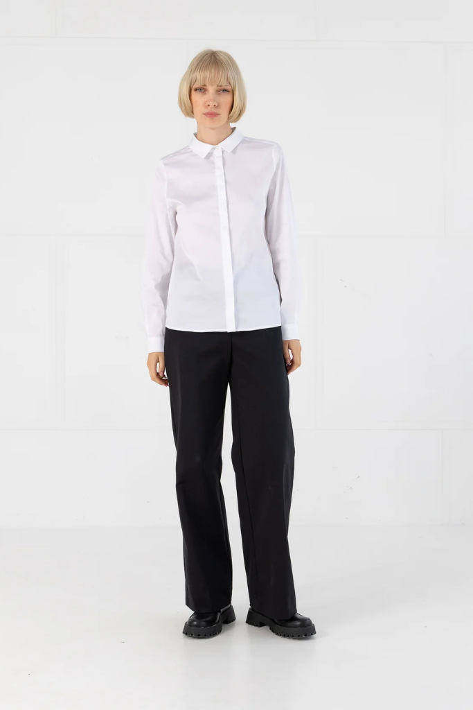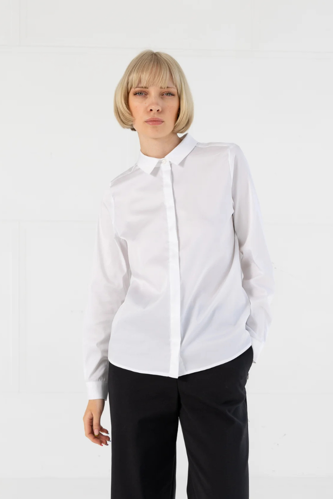 Create an accountThe Coster Copenhagen Fitted Classic Shirt in white is a refined essential for any elegant wardrobe. This blouse blends timeless design with a modern, feminine fit, making it perfect for both business and casual wear.