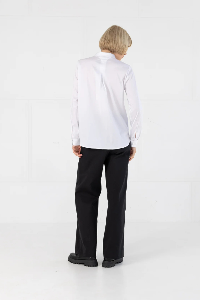 Designed to follow the body without feeling tight, this blouse subtly enhances the feminine silhouette. Style it with tailored trousers for a sophisticated office outfit or pair it with denim for effortless everyday elegance. Fits true to size.