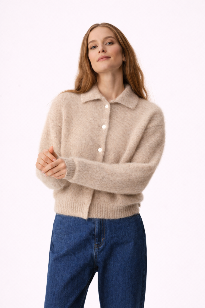 Create an accountThe Des Petits Hauts Alpolo Knitted Cardigan in latte is a soft and lightweight knit that combines elegance and comfort with ease. Made from a premium blend of 62% kid mohair, 20% wool, 16% polyamide and 2% elastane, it offers a refined texture with a subtle sheen.