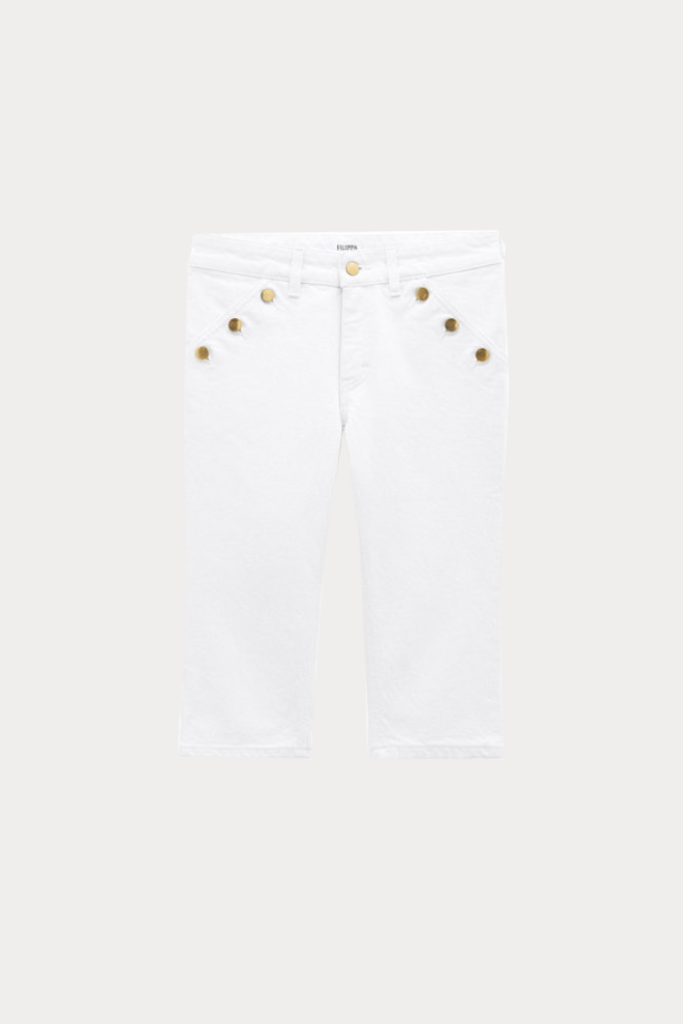 De Filippa K Denim Capribroek white is een driekwart spijkerbroek. De spijkerbroek heeft gouden hardware details en loopt tot de laagste. De broek heeft een lichte wassing en heeft een lage taille.