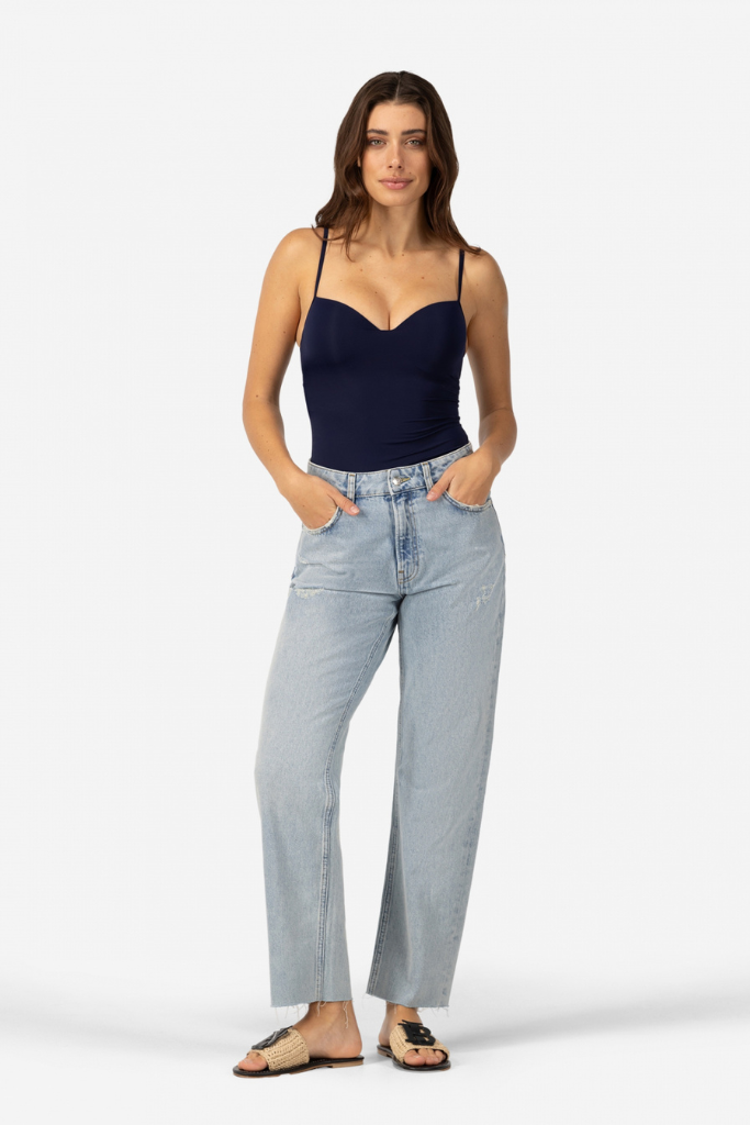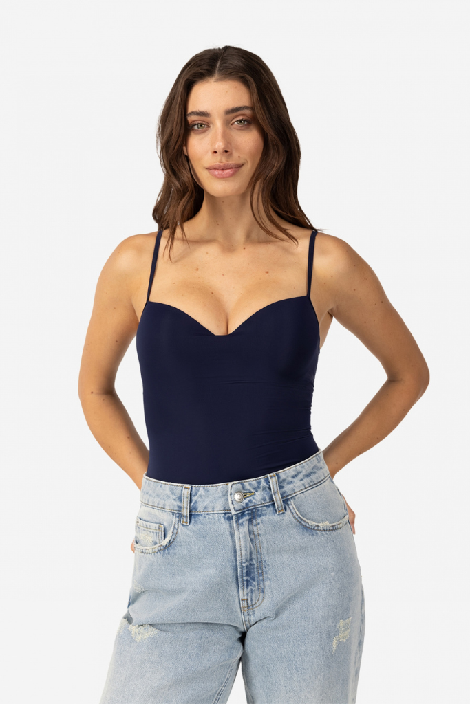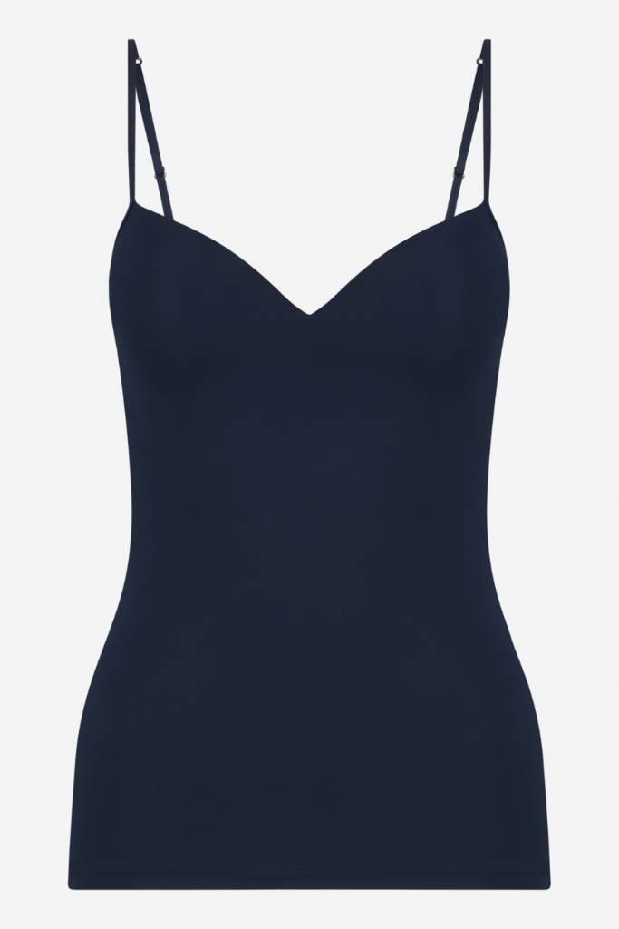Create an accountThe Ibana Eden Top in navy is a stylish and versatile base layer that pairs effortlessly with blazers, sheer blouses, or shines as a sleek standalone piece. Made from a smooth stretch fabric, it hugs the body comfortably while the lightly padded cups add shape and support.