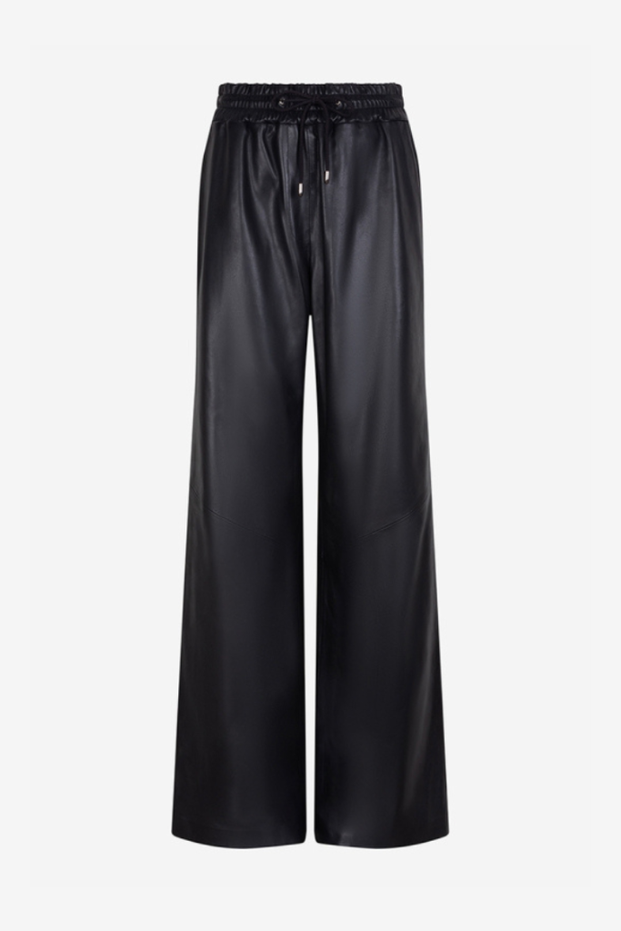 Ibana's Pippa leather pants in black feature a high waist, wide fit and elastic waistband with drawstring. Comfortable as well as stylish. Pair with a top for a powerful, modern look.