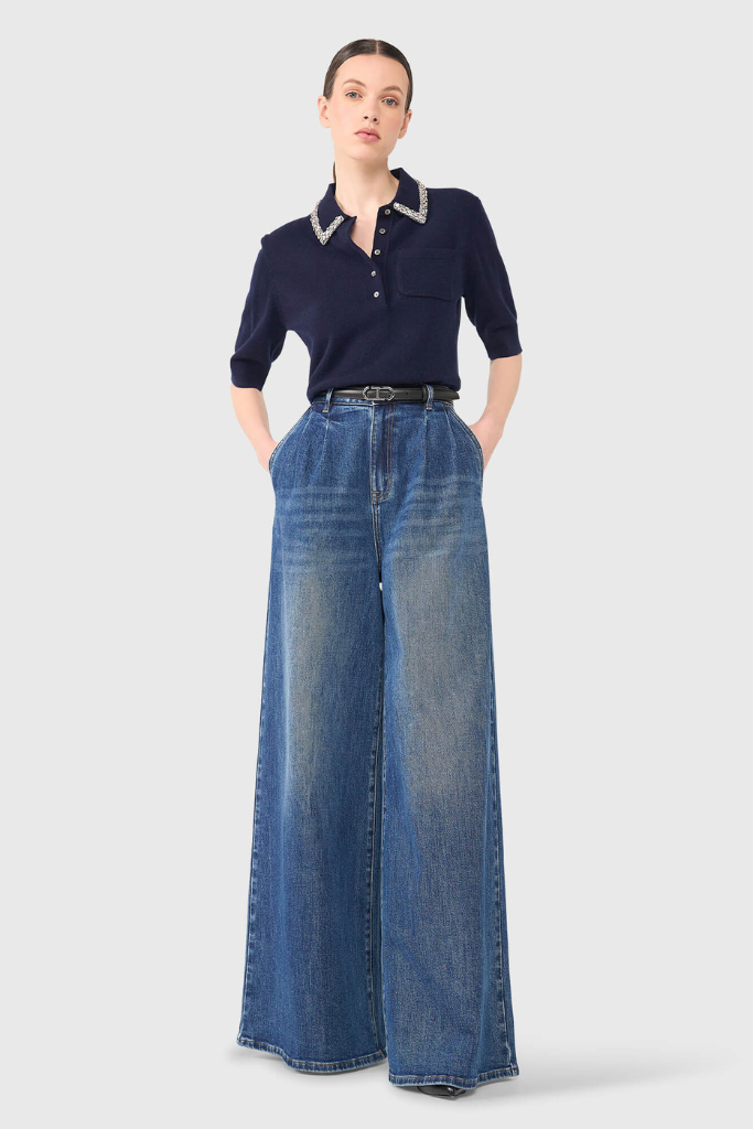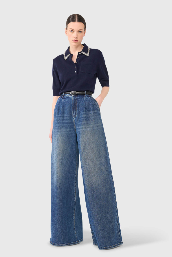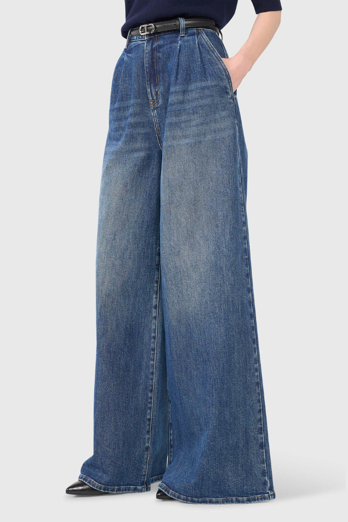 Create an accountThe Janice Dexter offers an elegant ultra wide-leg silhouette in a soft stretch denim, presented in classic blue. With its high-rise waist and chino-inspired fit, it creates a modern, effortless vibe. The jeans run generously, so consider sizing down, and the slight flare in the legs adds length to your silhouette. Whether aiming for a casual look or a statement outfit, this pair is a versatile wardrobe staple.