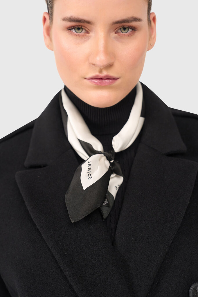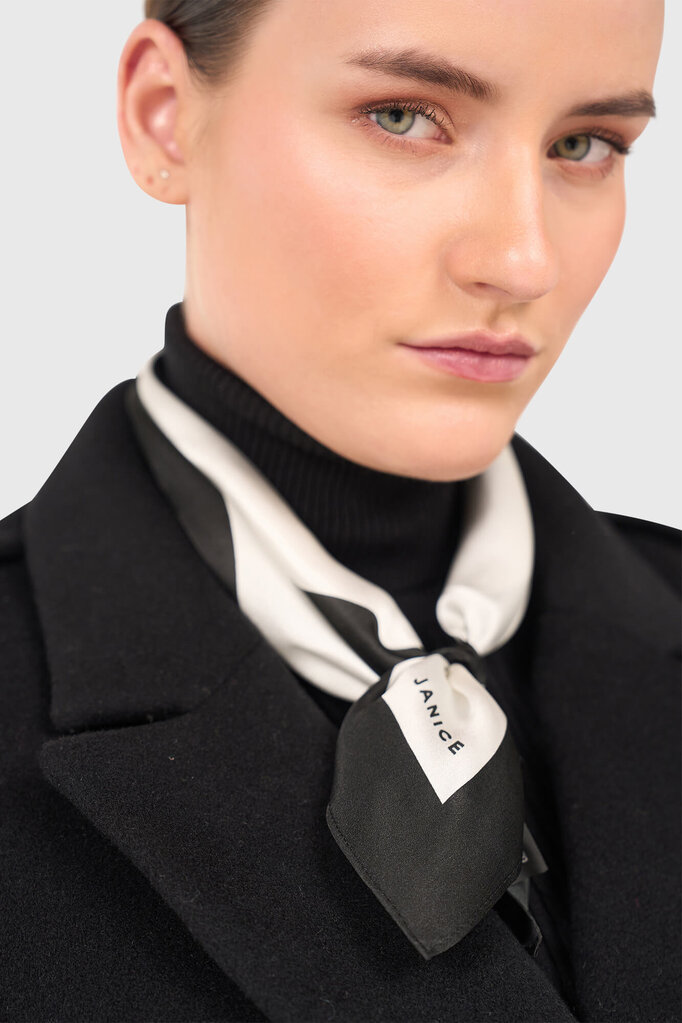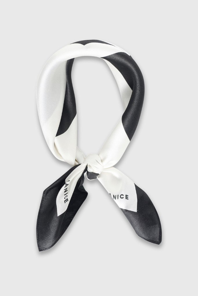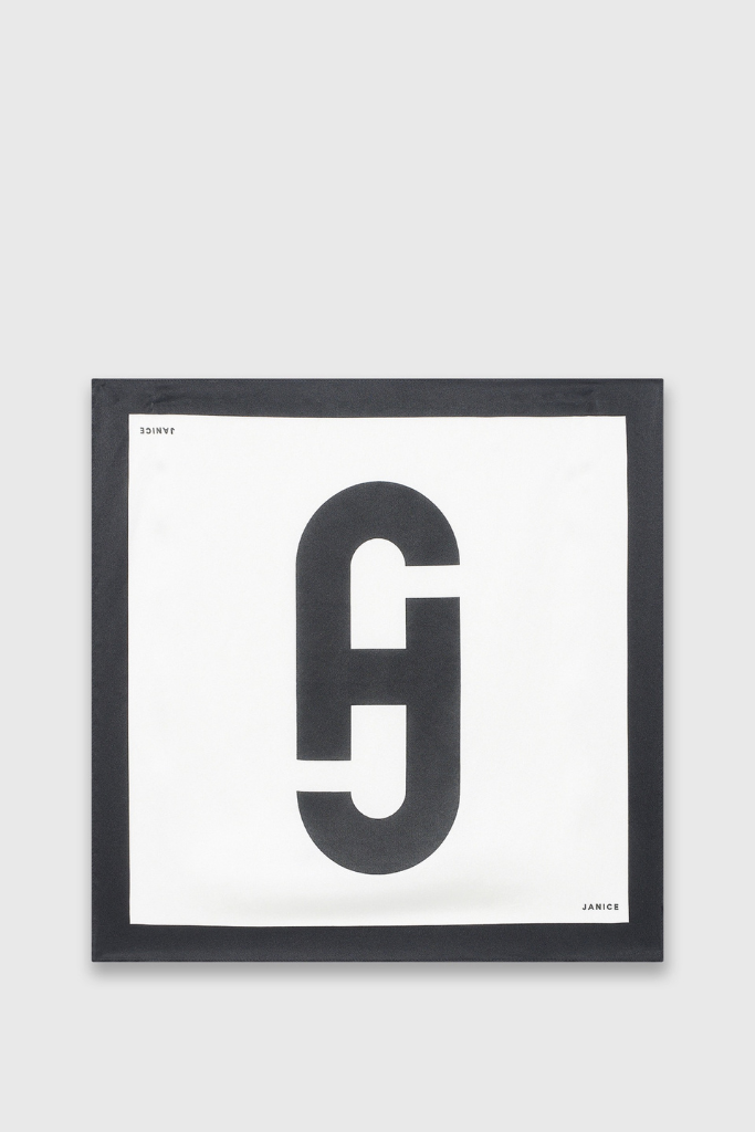 Create an accountThe Janice Effron scarf blends elegance and simplicity with bold, graphic impact. Made from 100% silk, it feels light and refined – ideal for everyday wear or more formal occasions. The black-and-white palette and striking Janice monogram offer a modern, luxurious touch. Style it loosely around your neck, in your hair or tied to your bag for a polished finish.
