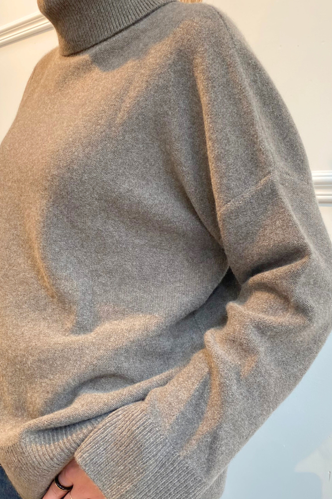 The Kashette Bria Neck Sweater in ceder, made from 100% cashmere, blends a natural hue with a refined roll‑neck, a luxurious statement offering both softness and style.