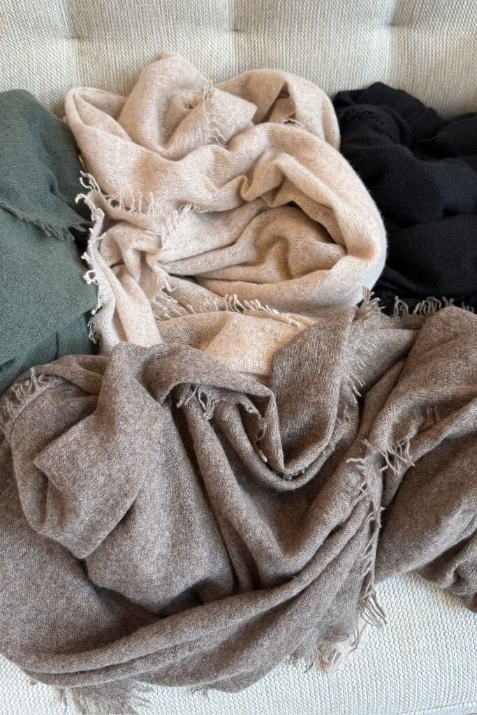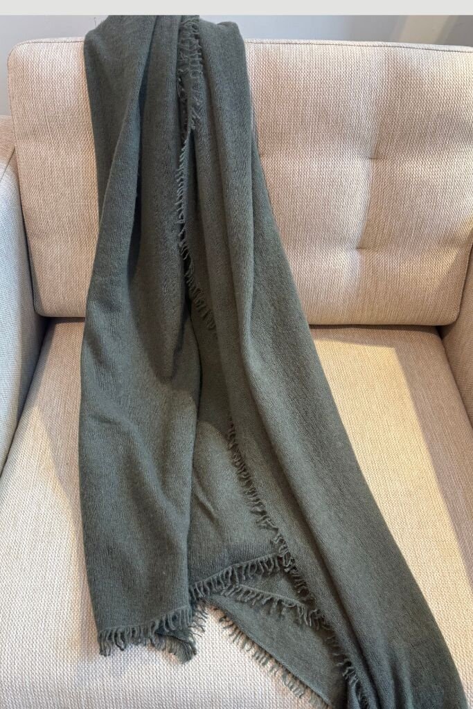 Made from high-quality 100% cashmere, this shawl is both comfortable and sustainable. Wear it draped over a blazer for a chic workwear look, or wrap it snugly around your neck on colder days. Ideal for everyday wear, yet stylish enough for an evening out.