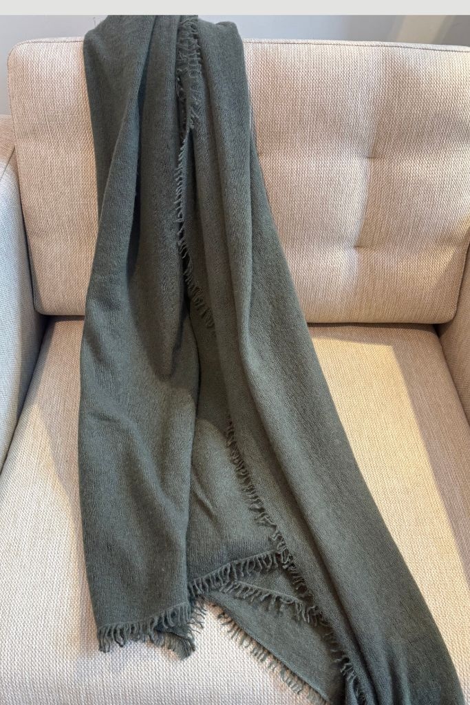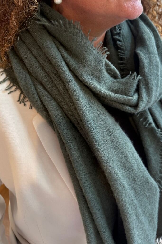 Create an accountThe La Salle shawl in green is a wonderfully soft and elegant scarf that fits perfectly into a timeless capsule wardrobe. This shawl comes in a warm green tone, a neutral shade that pairs effortlessly with any outfit. The loosely woven texture and subtle frayed edges give the scarf a natural, casually luxurious look.