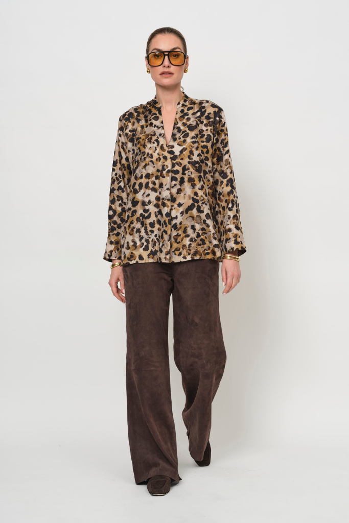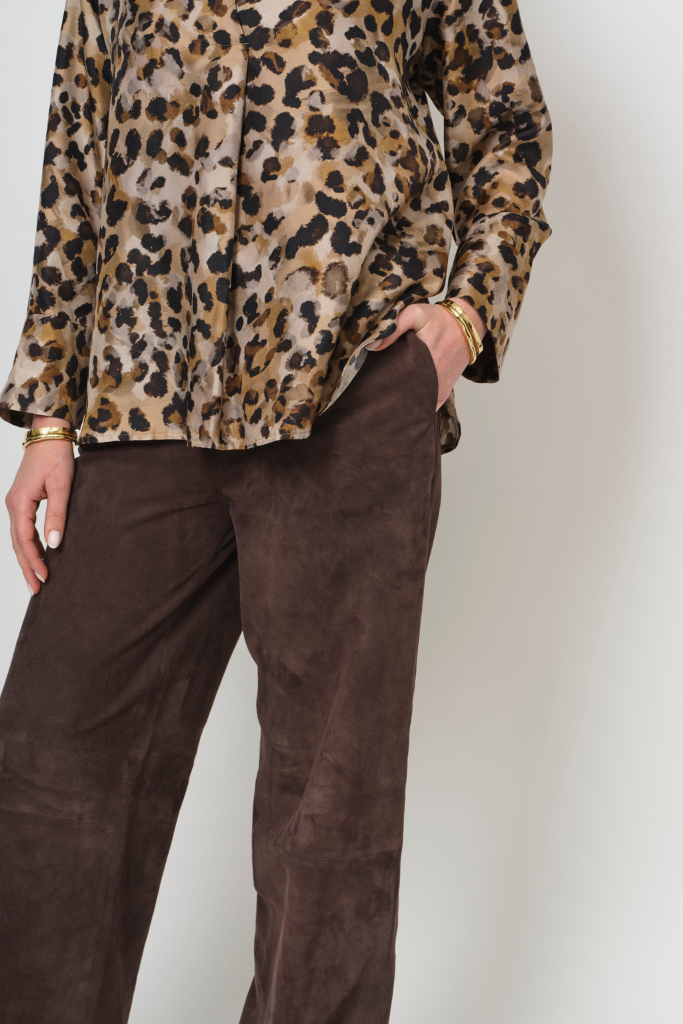 Create an accountThe La Salle Wide‑Leg Suede Pants in chocolate is a luxurious statement piece for your wardrobe. Crafted from 100% premium suede These trousers feature a gently flowing wide-leg cut that elongates your legs and drapes elegantly.