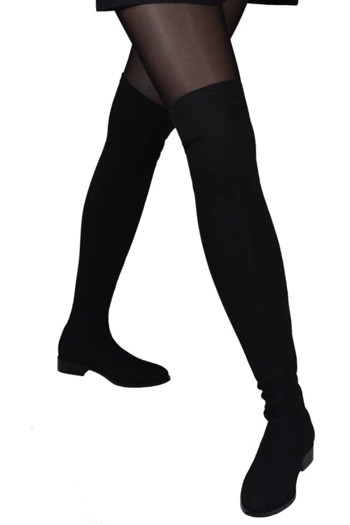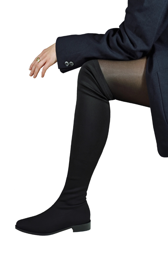 Create an accountThe MadOre High Stretch Boot black is a stylish and comfortable over-the-knee essential. This timeless classic is crafted from ultra-stretchy black fabric that fits snugly along the leg without slipping. Featuring a sturdy 2 cm heel and a subtle rounded toe, this boot is lined with gold-colored leather for a luxurious touch and maximum comfort. The leather sole includes an anti-slip layer, offering both elegance and safety in colder seasons.
