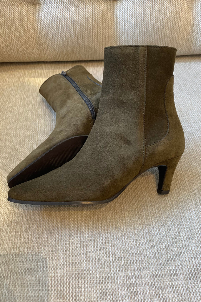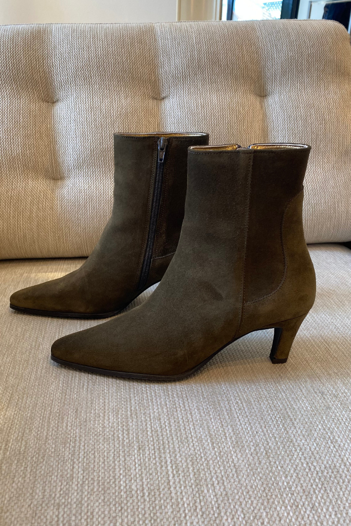 The MadOre Short Boot Suede kaki is a chic ankle boot in soft suede. With its warm khaki tone and timeless design, it pairs effortlessly with any outfit.