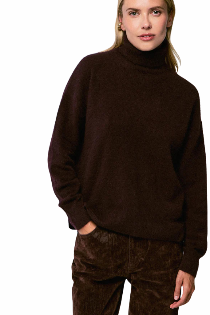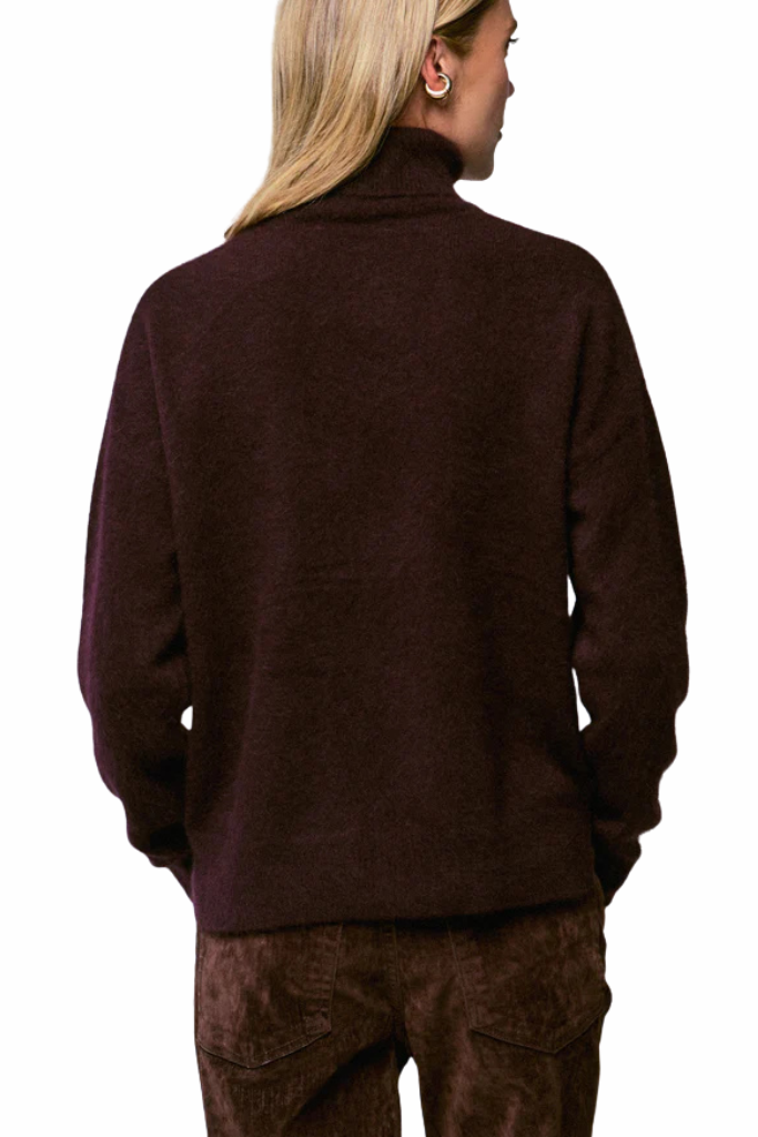 The Majestic Filatures Raccoon aubergineTurtleneck is a luxurious, timeless knit in a soft raccoon-wool blend, combining elegance and comfort effortlessly.