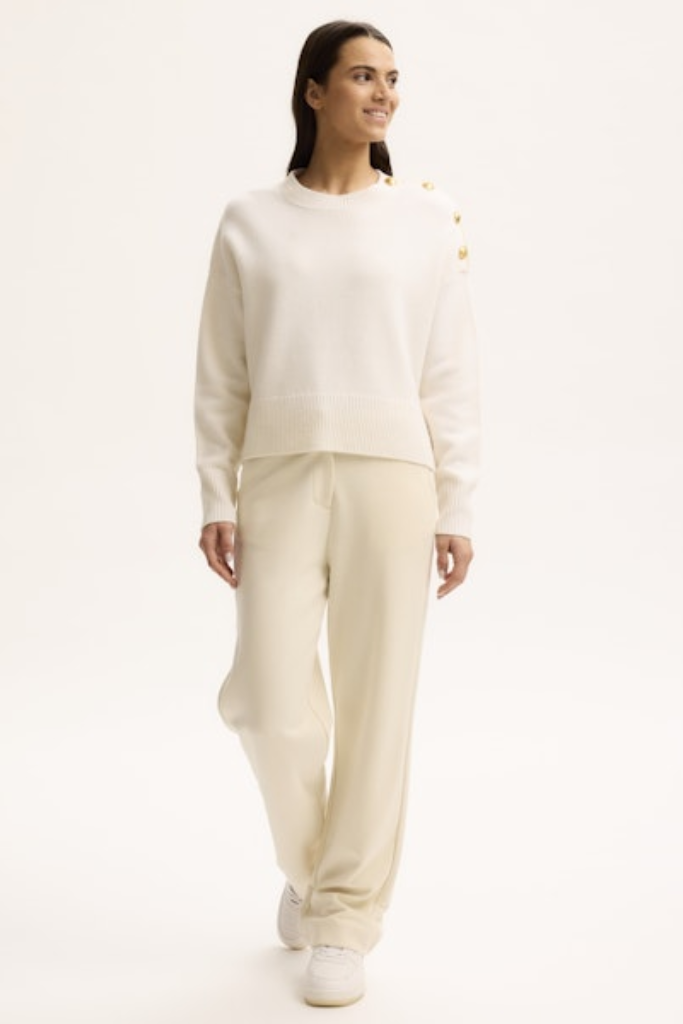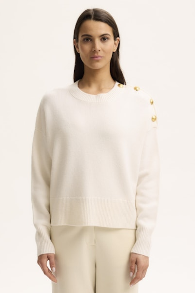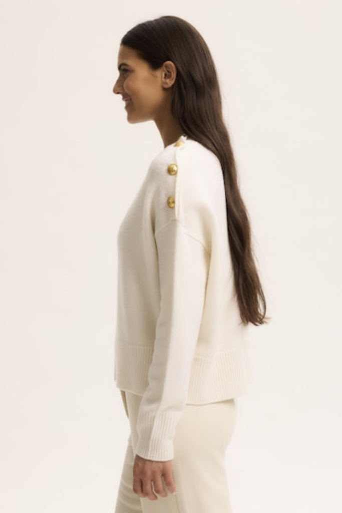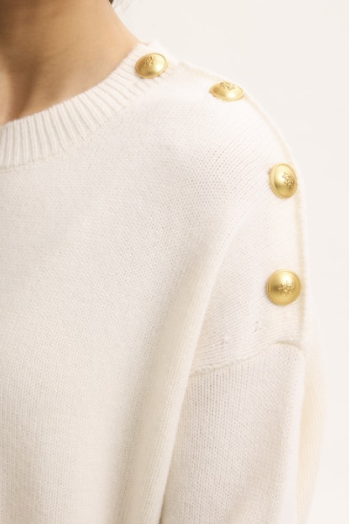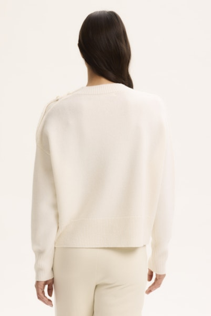 Create an accountThe Majestic Filatures Round Neck Sweater in Milk is a chic essential that effortlessly blends softness and elegance. Crafted from a luxurious blend of 90% wool and 10% cashmere, this sweater offers exceptional comfort. The boxy fit gives it a modern, relaxed look, while the eye-catching gold shoulder buttons add a touch of sophistication.