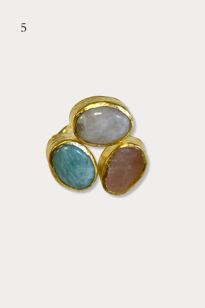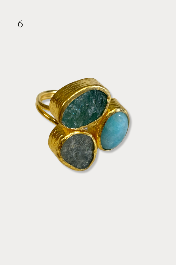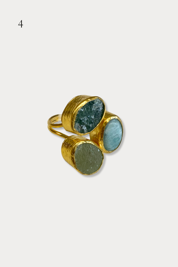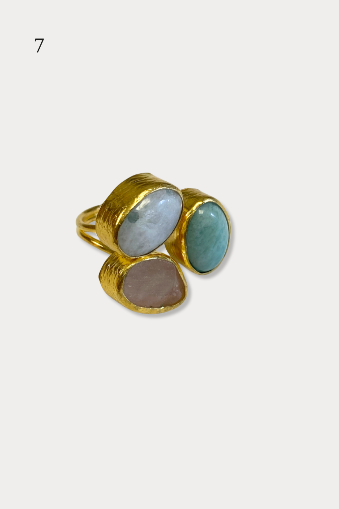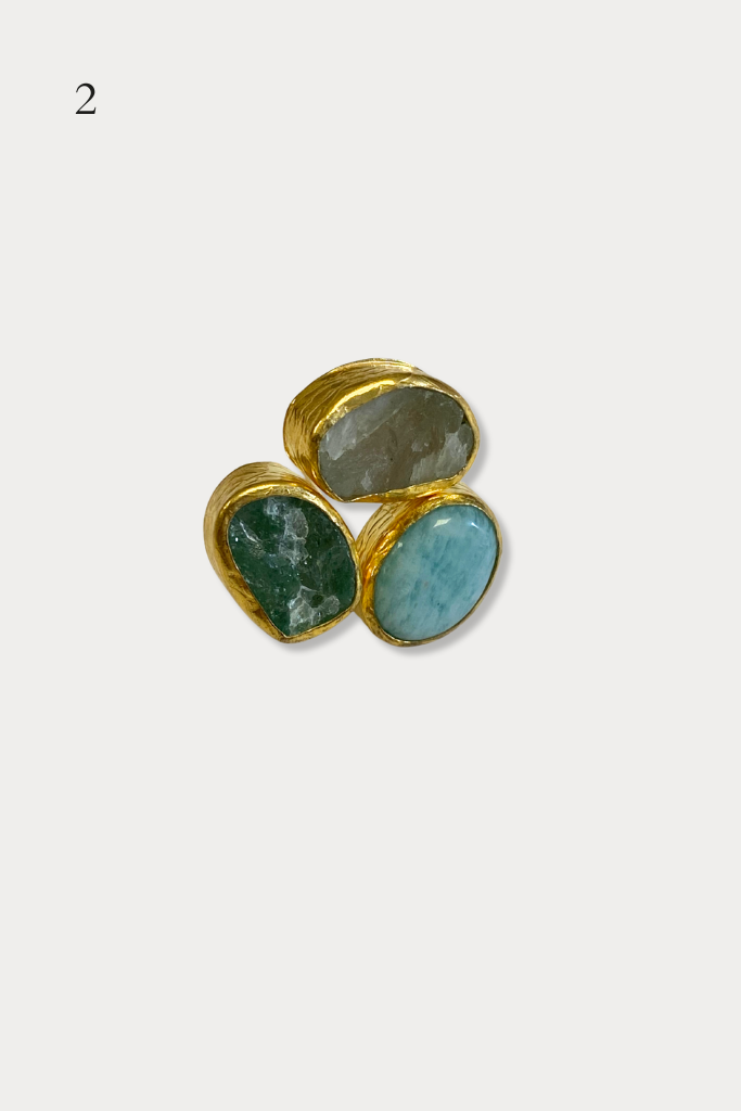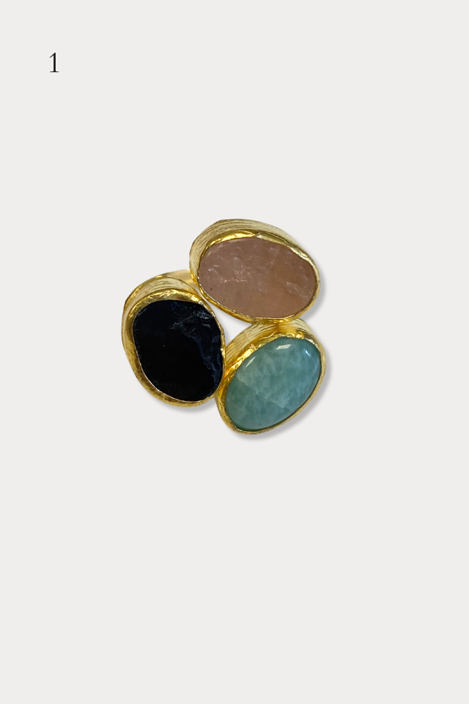 Create an accountAdd a touch of playful sophistication to your look with the RIVS Multi Color 3-Stone Ring. This eye-catching piece features three carefully selected semi-precious stones, each with its own unique hue and texture, set in a warm gold-tone band. With seven different color variations to choose from, you’ll find a combination that perfectly complements your personal style.