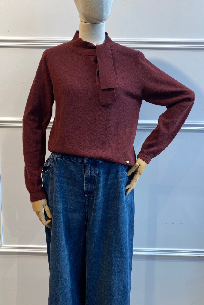 Create an accountThe Niù Sweater with Scarf Camelia strikes the perfect balance between style and comfort. This elegant knit in a warm camelia hue features an integrated scarf detail at the neck, adding a feminine and refined touch.