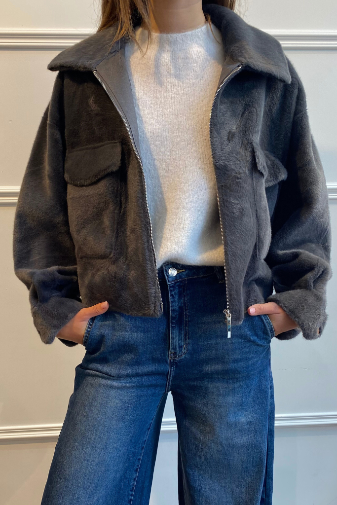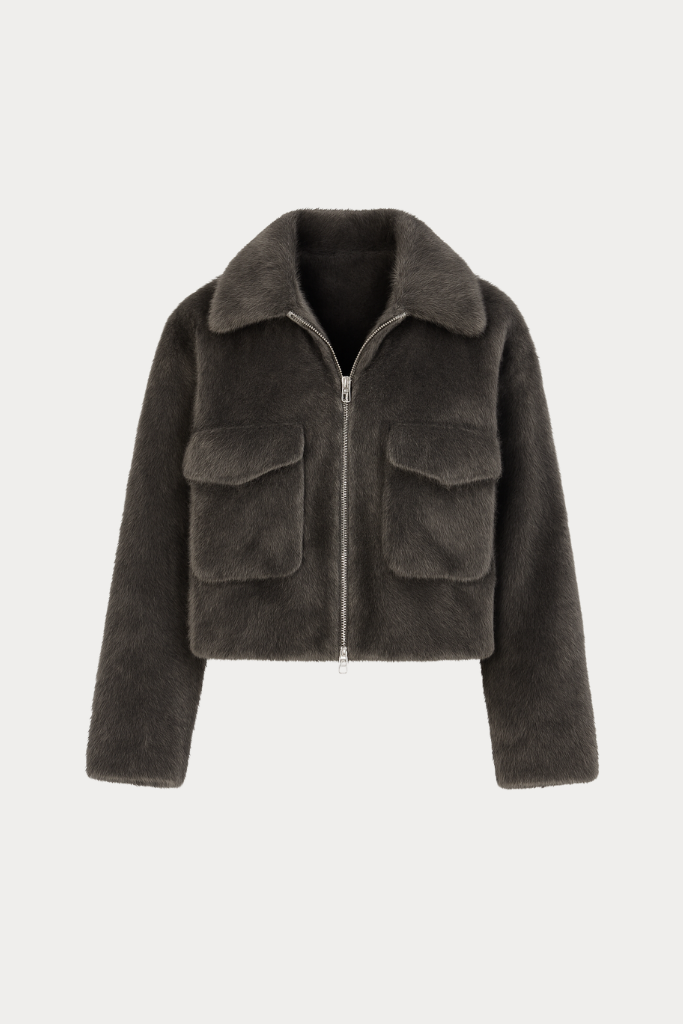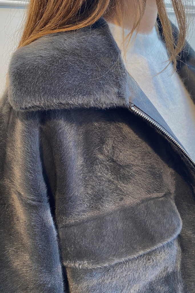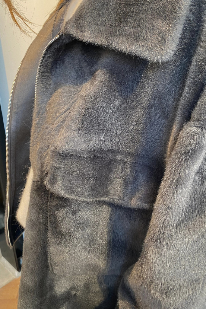 Review Pride To Be Vana Mink Fake Fur Jacket dark grey
