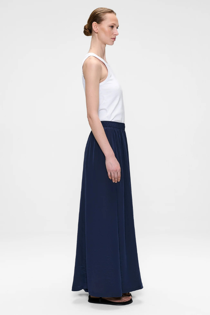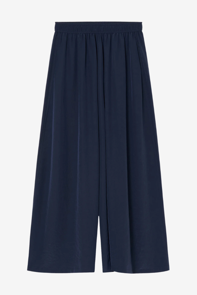 The Zenggi Amsterdam Technosilk Wide Palazzo Pants Japan Blue are elegant wide-leg trousers crafted from 100% polyester with a luxurious silk-like finish. Fluid, lightweight and refined for a powerful feminine silhouette.