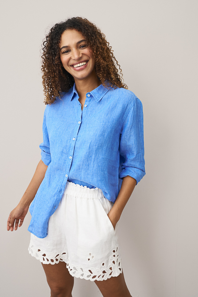 Beoordeel 0039 Italy Mira Linnen Blouse madonna blauw