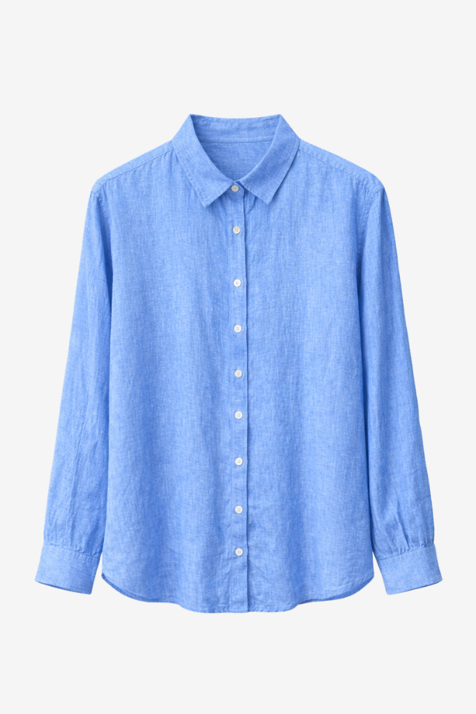 De diepe blauwtint straalt elegantie uit en is moeiteloos te combineren met lichte of neutrale tinten. Dankzij de klassieke kraag, lange mouwen en knoopsluiting is deze blouse geschikt voor zowel casual als zakelijke gelegenheden. Stijlvol en veelzijdig – van strand tot kantoor.