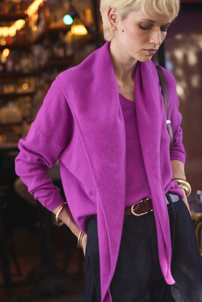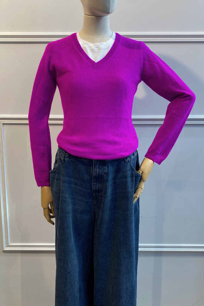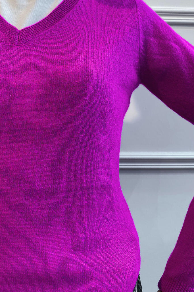 De Absolut Cashmere Anatola V-hals trui in purple neon is een tijdloze essential van 100% cashmere. Zacht, licht en moeiteloos elegant, een must-have basic.