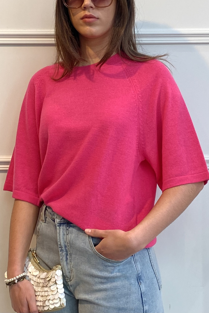 De Absolut Cashmere Leana Trui Fuchsia is een luxe short-sleeve knit van 100% cashmere in een opvallende fuchsiaroze tint – vrouwelijk, krachtig en tijdloos.