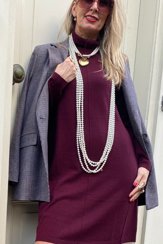 De Allude Jurk A‑Lijn Bordeau is een must-have voor wie houdt van tijdloze elegantie en ultiem comfort. Deze midi‑jurk combineert een klassieke A‑lijn pasvorm met hoogwaardige materialen.
