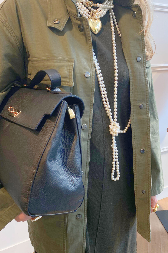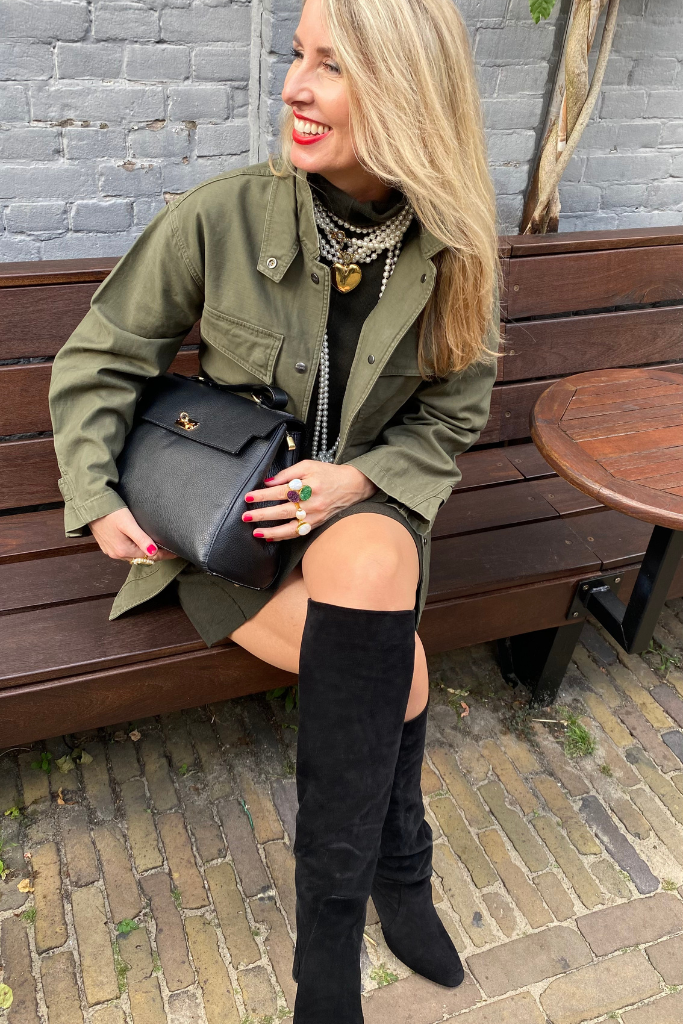 Draag met leren enkellaarsjes of pumps in neutrale tinten, en combineer met een zachte cardigan of een structured blazer. Voeg een subtiele gouden ketting toe voor extra finesse.