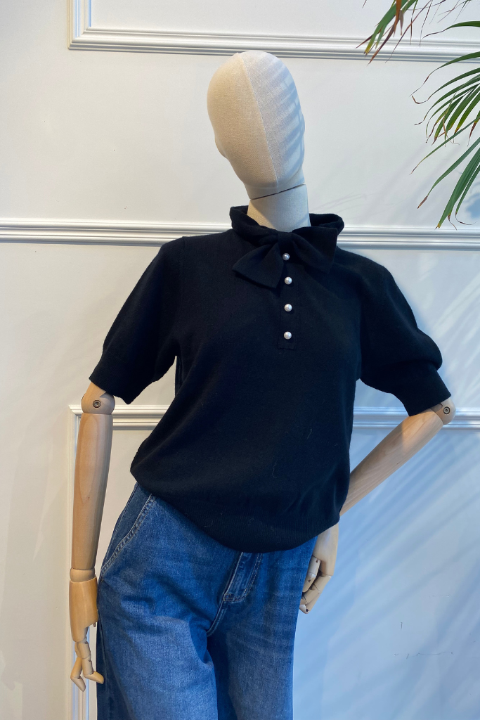Account aanmakenDe Allude Trui Parel in zwart combineert tijdloze elegantie met verfijnde details. Gemaakt van een hoogwaardige mix van 70% scheerwol en 30% kasjmier voelt deze trui zacht en luxueus aan. Bij de hals siert een strik van dezelfde stof het ontwerp, met daaronder een subtiel rijtje parels dat tot aan de borst loopt. De korte mouwen zijn licht geplooid, wat een vrouwelijke en speelse touch geeft.