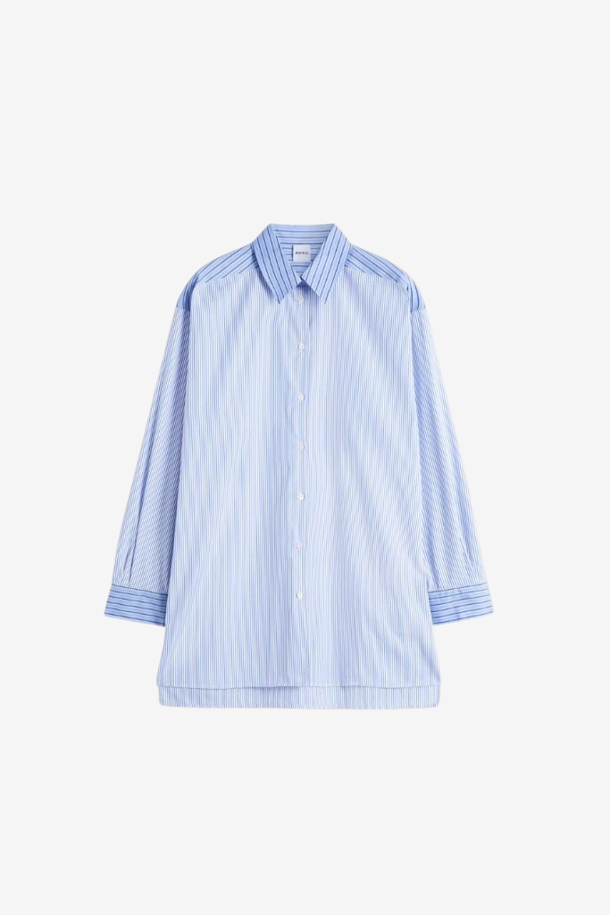 Account aanmakenHet Aspesi Patchwork Shirt is een stijlvolle en onderscheidende toevoeging aan je garderobe. Dit overhemd is uitgevoerd in soepel katoen-poplin met een relaxed fit—het model is 1,68 m en draagt maat XS (lengte: 80 cm, breedte: 54 cm, mouw: 50 cm). Het bijzondere patchwork-streepmotief combineert textuur en ritme op een subtiele manier, terwijl parelmoeren knopen en een klassieke kraag voor tijdloze verfijning zorgen.