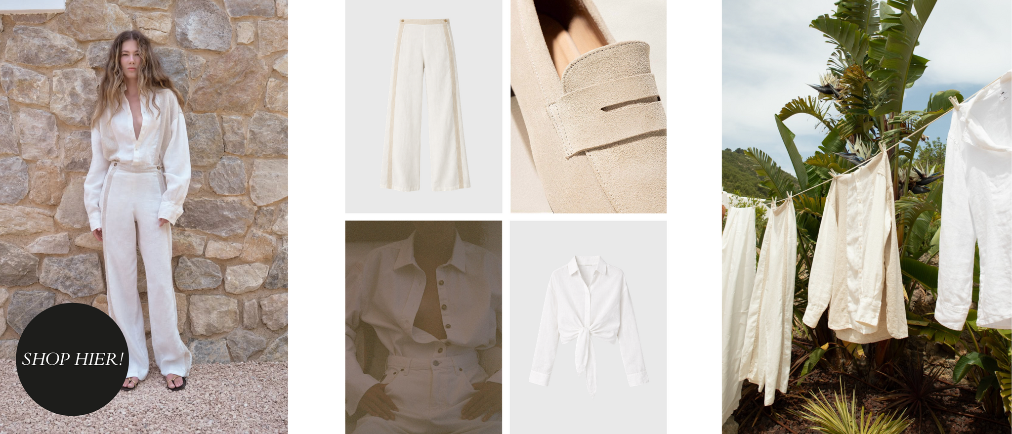 Van off-white en zandkleur tot lichtblauw: deze collectie ademt rust en verfijning. Ideaal om eindeloos te combineren binnen je bestaande garderobe.