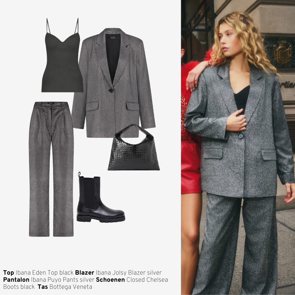 Het glitterpak van Ibana is een absolute blikvanger voor elke feestelijke gelegenheid. Shop de volledige look