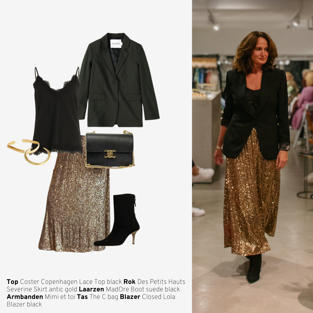 Combineer de rok en top voor een maximaliste look, of draag de stukken apart voor een subtielere feestelijke outfit. Of je nu gaat voor een glam night of een chique party, dit duo is een absolute must have.