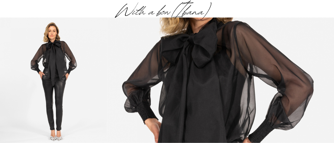 Ibana voegt een verfijnd item toe aan de partycollectie met een zwarte, licht doorschijnde blouse. De blouse heeft een delicaat strikdetail aan de kraag , wat een elegante en vrouwelijke flair toevoegt.