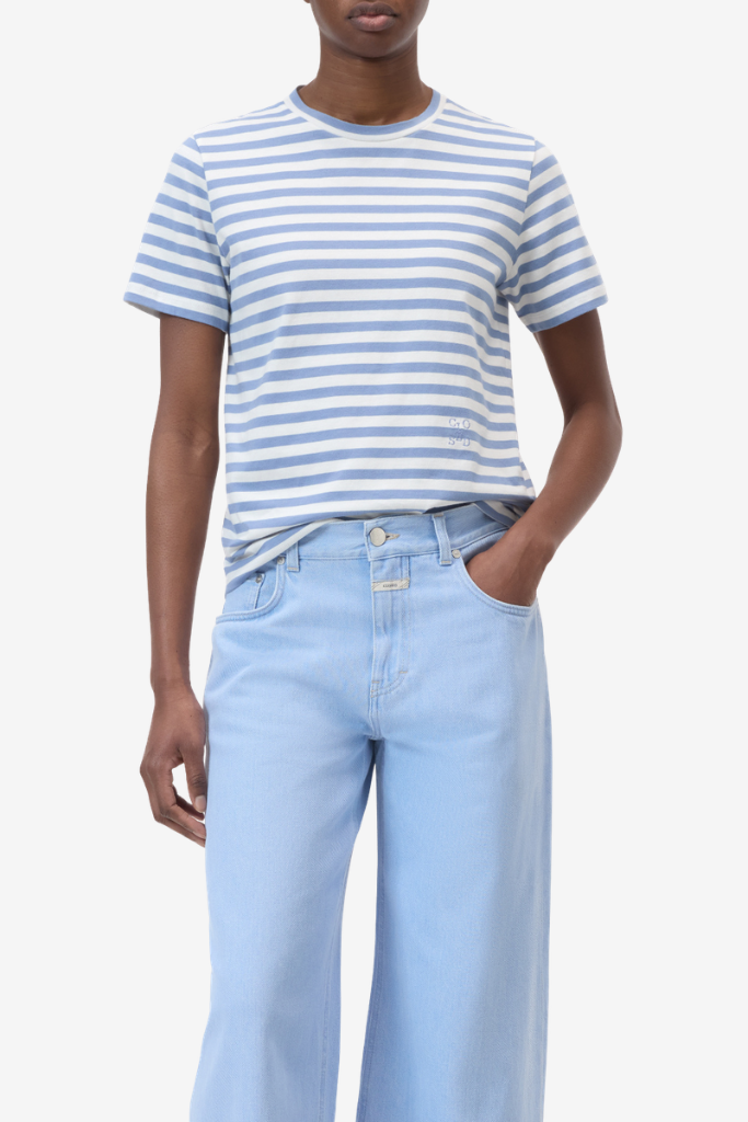 Het T-shirt is gemaakt van zware, compacte single jersey van 100% biologisch katoen. De stof voelt stevig en zacht tegelijk en behoudt mooi zijn vorm. De regular fit zorgt voor een comfortabele pasvorm die soepel langs het lichaam valt. De ribgebreide ronde hals en het subtiele Closed monogram bij de taille geven het ontwerp een verfijnde en herkenbare finishing touch.