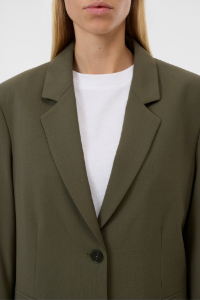 Account aanmakenDe Closed Lola Blazer in forest green is een moderne klassieker met een comfortabele relaxed fit. Deze blazer is gemaakt van een hoogwaardige wolmix met een vleugje stretch voor extra draagcomfort. De blazer is volledig gevoerd en voorzien van een klassieke reverskraag, paspelzakken en een knoopsluiting. Een elegante, tijdloze toevoeging aan je garderobe die je zowel zakelijk als casual kunt dragen. Combineer met de bijpassende broek voor een krachtig ton-sur-ton pak.