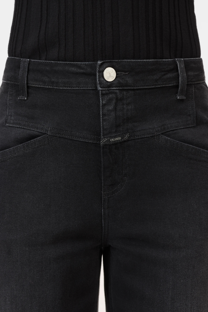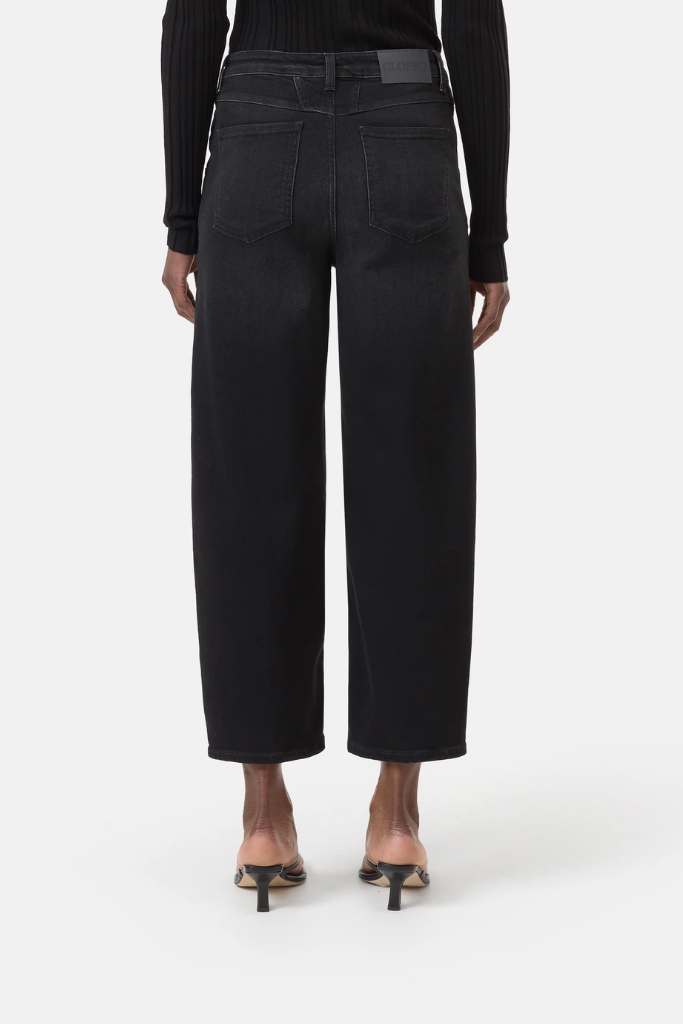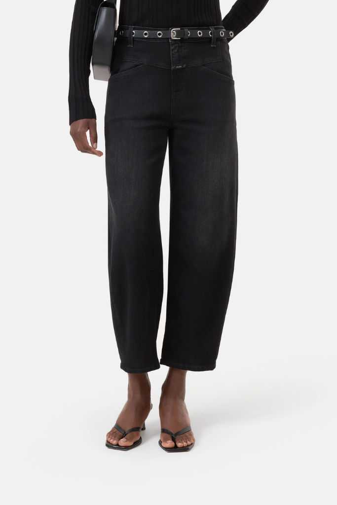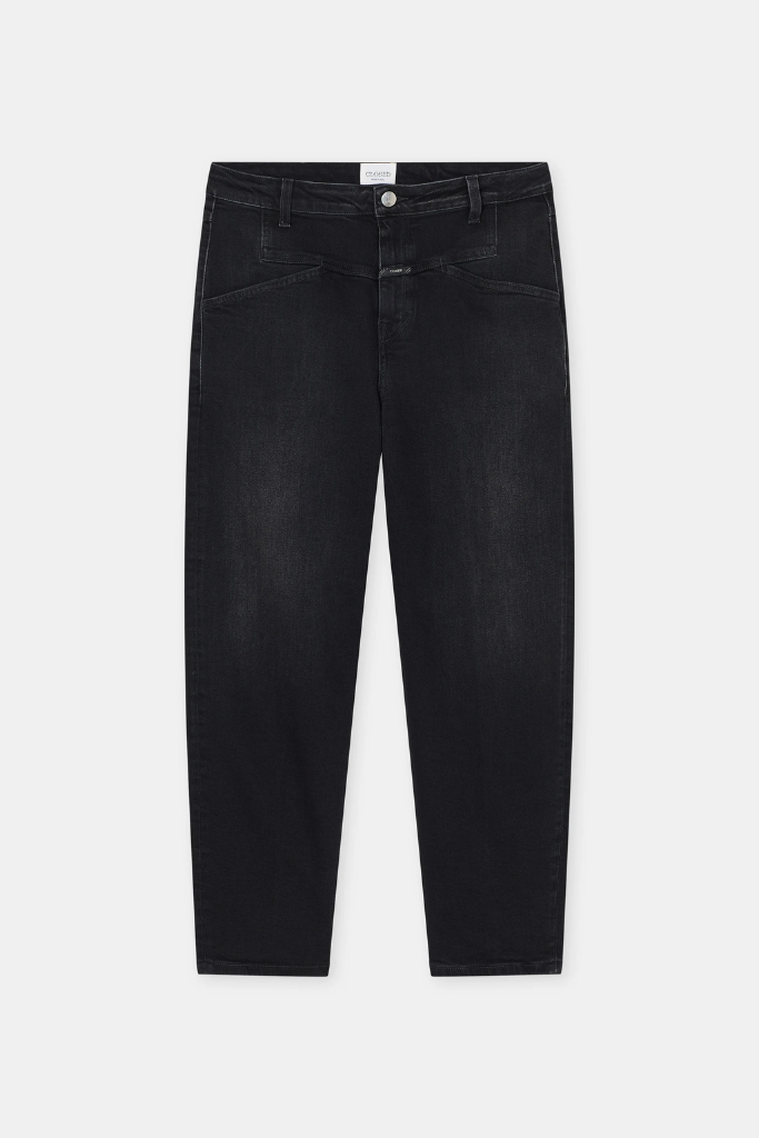 De Closed Stover‑X pantalon in dark grey is een modern en duurzaam denim item uit de A BETTER BLUE-lijn van Closed. Deze jeans is gemaakt van een middelzware denim (11 oz) met zachte stretch en biologisch BCI-katoen, en geproduceerd in Italië met gebruik van plantaardige kleurstoffen. De broek heeft een relaxed fit met een subtiel toelopende cropped pijp, en is afgewerkt in een diepe, verwassen donkergrijze tint. De iconische X-pockets en stevige tailleband met riemlussen geven het ontwerp een eigentijdse twist met een utilitaire knipoog.