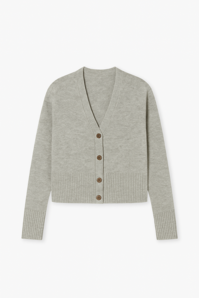 Account aanmakenDe Closed V‑neck cardigan in beige melange is een verfijnd en veelzijdig item in een zachte, gemêleerde neutrale tint. Dit cropped vest is gebreid van 100% extra fijne Responsible Merino Wool (7gg, dubbel-draads), en afgewerkt met een lichte overwash voor een moderne handfeel. De rechte regular-fit, V‑hals met horenschaalknopen en ribboorden geven het vest een subtiele structuur. Perfect voor een ingetogen look met luxe flair.
