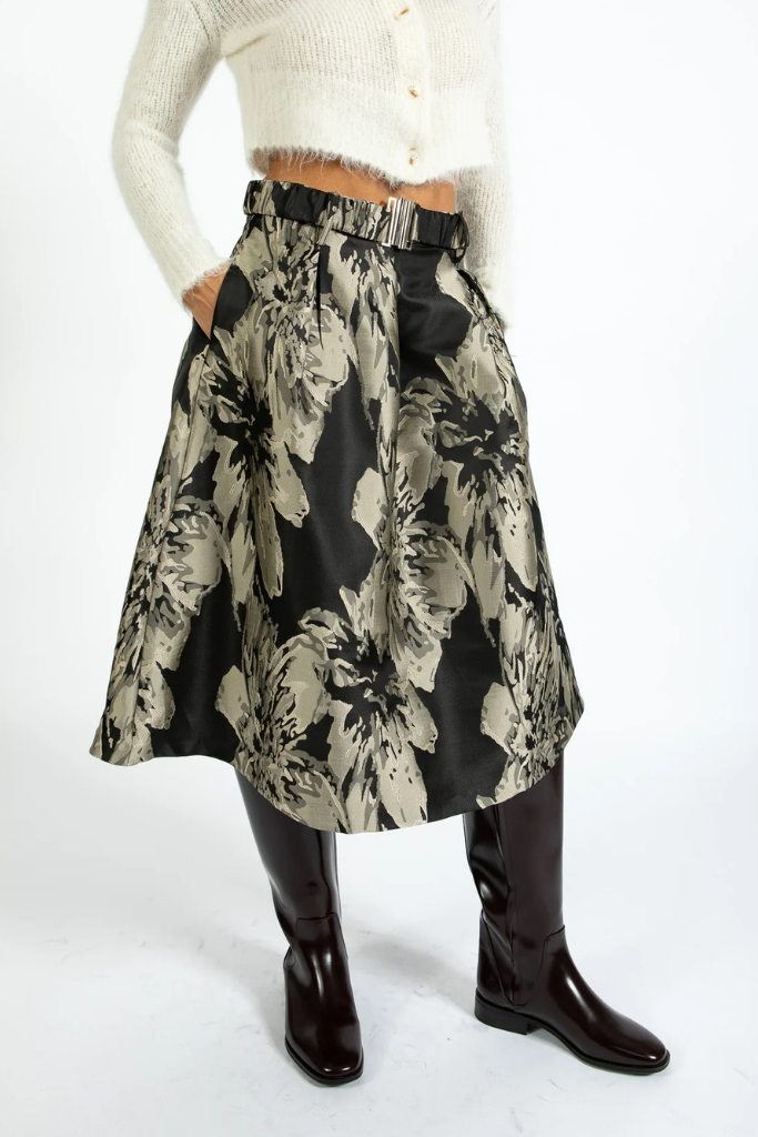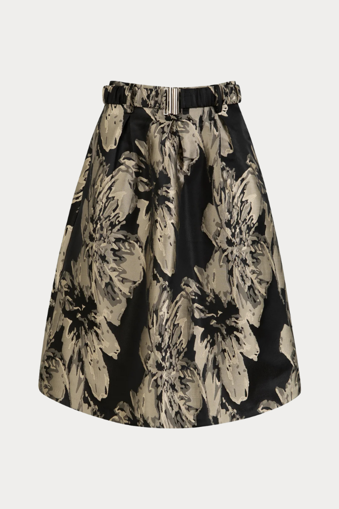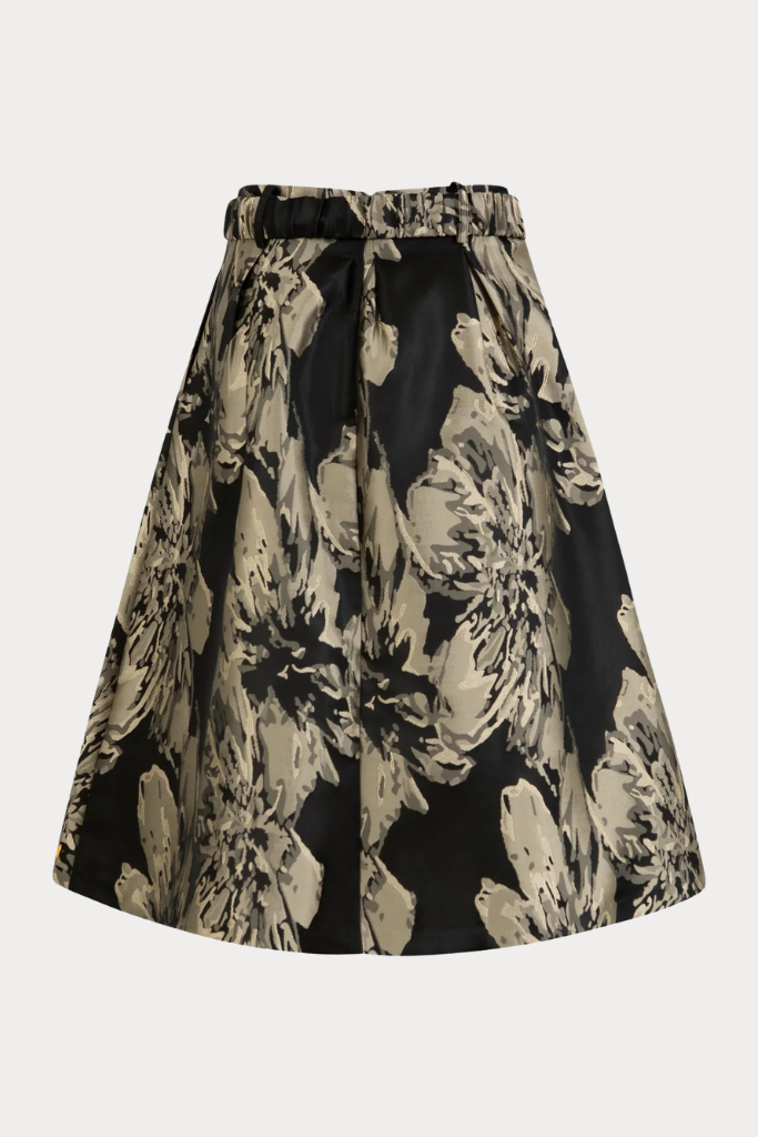Account aanmakenDe Coster Copenhagen Jacquard Skirt Sand jacquard is een feestelijke en elegante rok met een rijke, bloemige jacquardprint in zand en zwart. Gemaakt van 100% polyester met een subtiele glans, voelt deze rok stevig maar soepel aan. De vrouwelijke ballonvorm ontstaat door de geplooide taille en zorgt voor een flatterend silhouet.