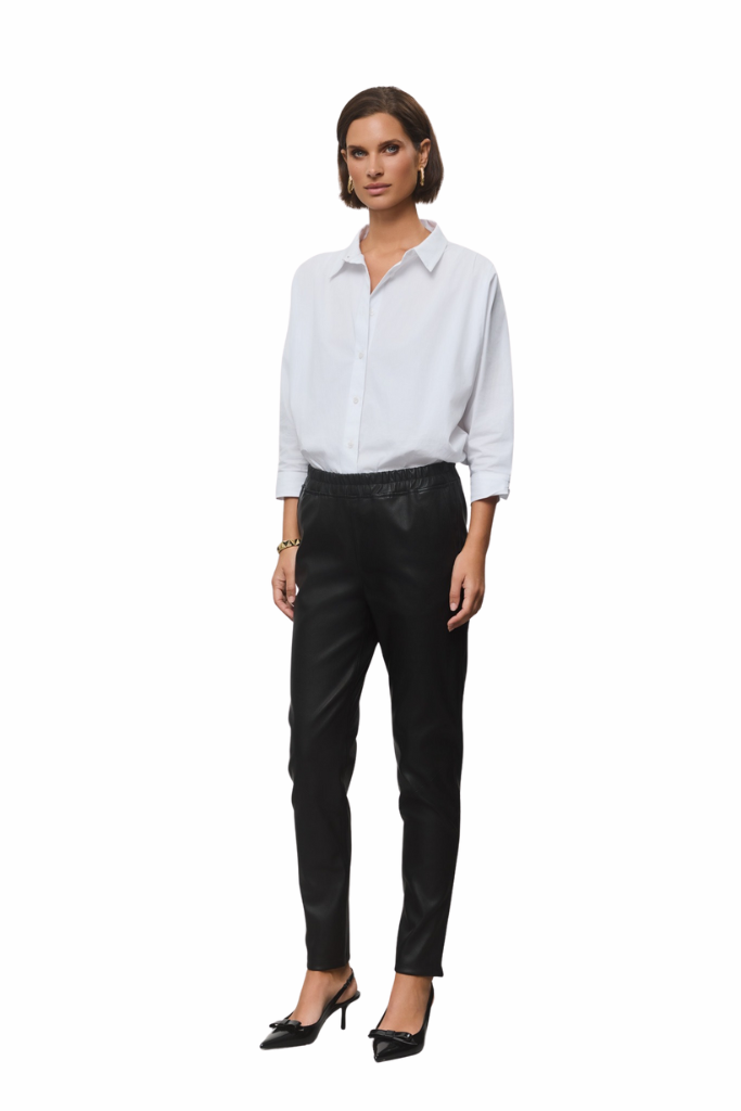 Account aanmakenDe DNA Amsterdam Hudson Leren Broek in Black is een tijdloos item dat moeiteloos klasse en comfort combineert. Deze elegante broek is gemaakt van hoogwaardig stretchleer, wat zorgt voor een soepele pasvorm die zich perfect naar je lichaam vormt. De elastische tailleband biedt extra draaggemak zonder in te leveren op stijl.
