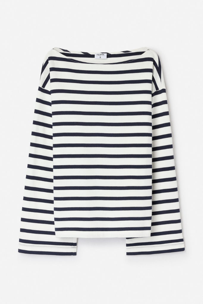 Deze top flatteert diverse lichaamsvormen en combineert moeiteloos met een jeans of linnen pantalon. Draag hem losjes of ingestopt voor een tijdloze maritieme uitstraling. De top valt ruim – kies je normale maat voor een oversized look of een maat kleiner voor een iets strakkere pasvorm.